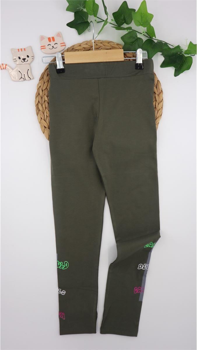 2301-4 DV Baskılı Kız Çocuk Tayt HAKİ YEŞİL