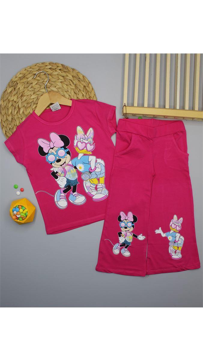 2305 Minnie Mouse Duffy Ducks Baskılı İspanyol Paça Takım FUŞYA