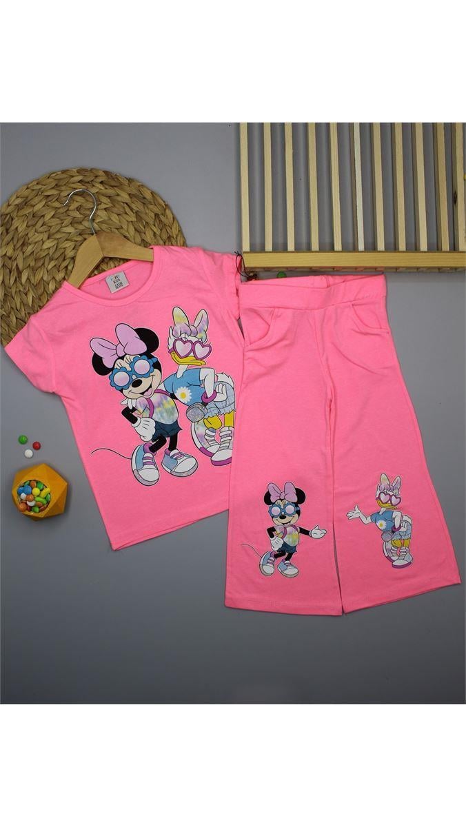 2305 Minnie Mouse Duffy Ducks Baskılı İspanyol Paça Takım PEMBE