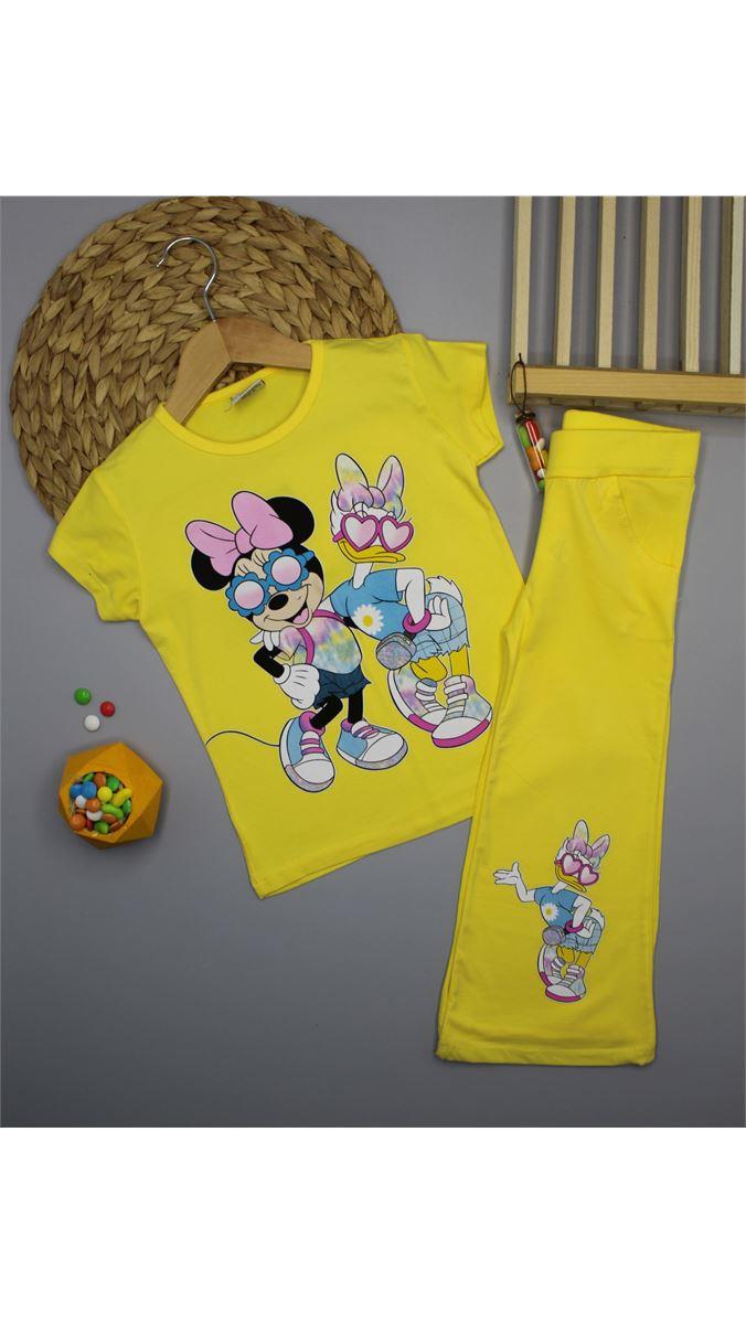 2305 Minnie Mouse Duffy Ducks Baskılı İspanyol Paça Takım SARI
