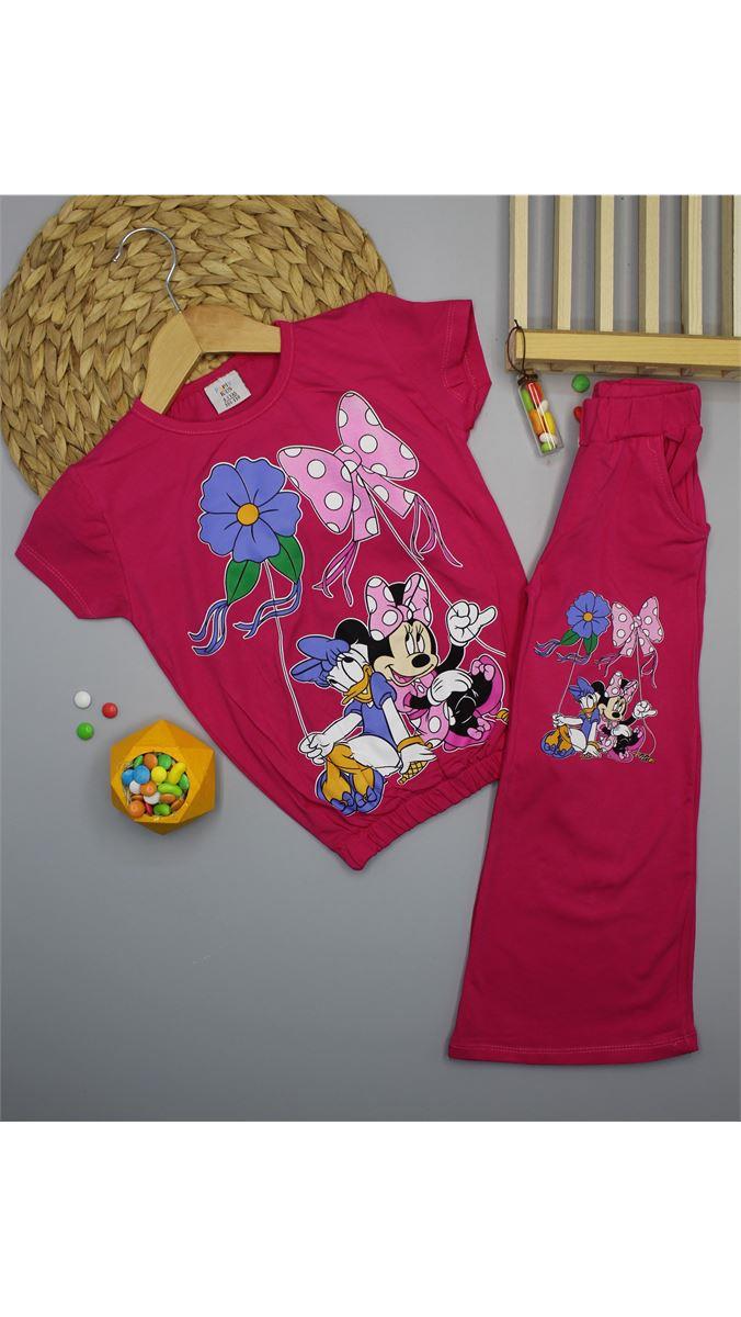 2306 İspanyol Paça Çiçek Ve Kurdale Minnie Mouse Kız Takım FUŞYA