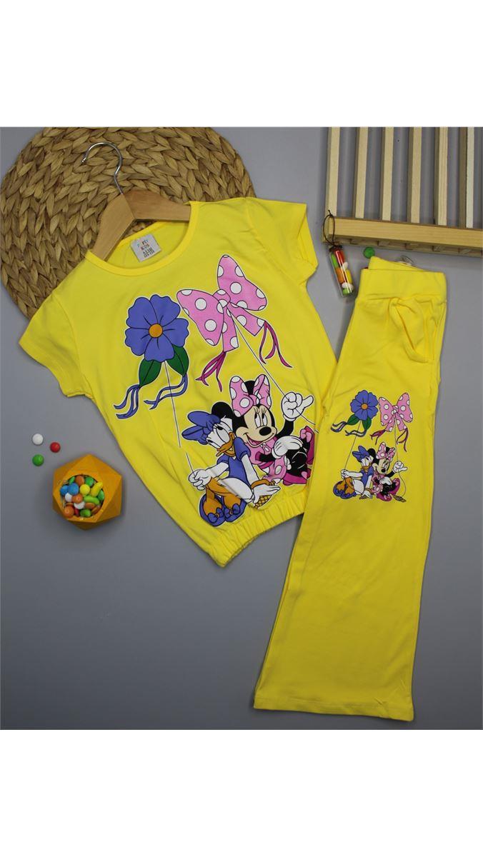 2306 İspanyol Paça Çiçek Ve Kurdale Minnie Mouse Kız Takım SARI