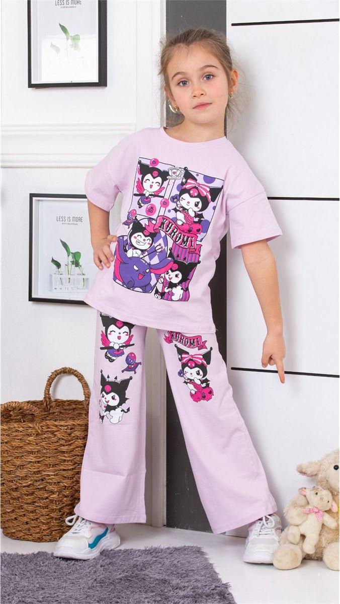 2372 Kuromi Desenli İspanyol Paça Kız Takım PEMBE