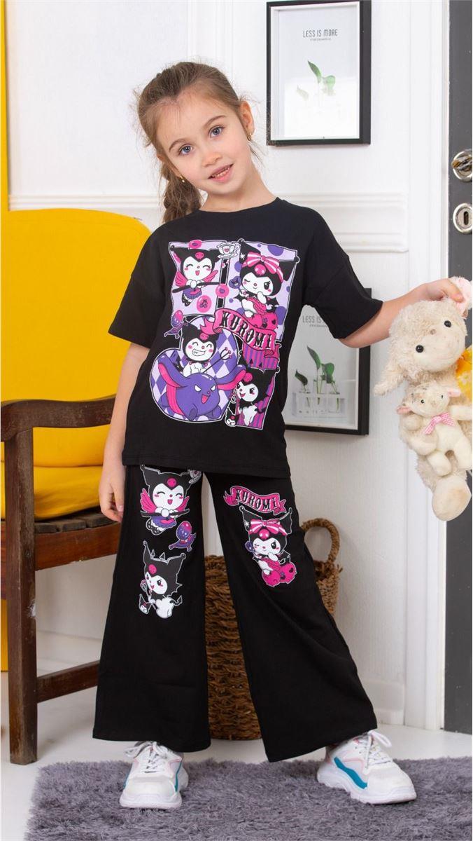 2372 Kuromi Desenli İspanyol Paça Kız Takım SİYAH