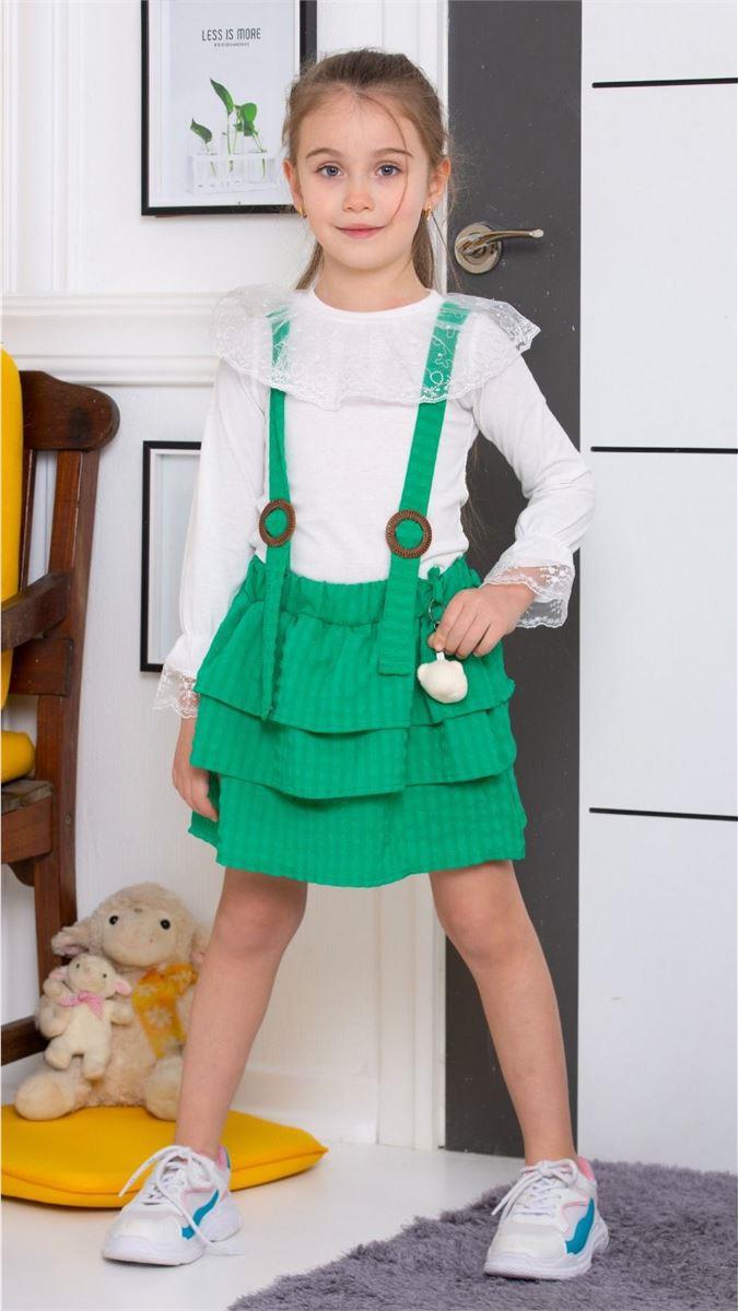 2385 Bebe Yaka Kol Detaylı Ayıcıklı İkili Salopet YEŞİL