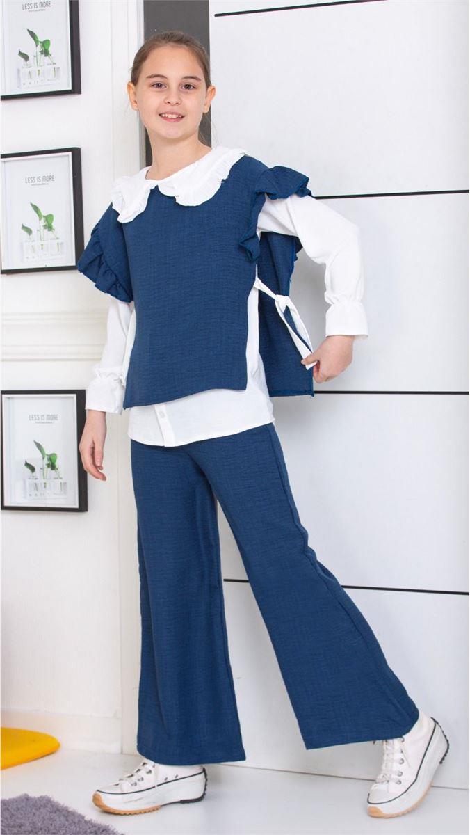 2399 Gömlekli Yarasa Üçlü Takım MAVİ