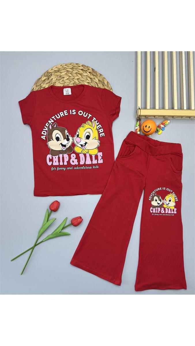 2404 İspanyol Paça Sincap Baskılı Takım KIRMIZI