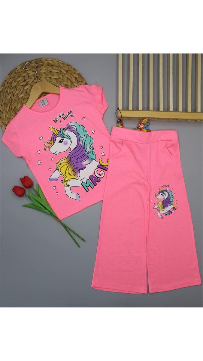 2405 İspanyol Paça Unicorn Magic Baskılı Takım PEMBE