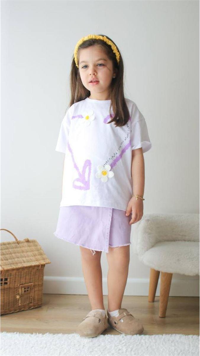 2406-33 Kalp & Papatyalı Kız Çocuk Takım LİLA