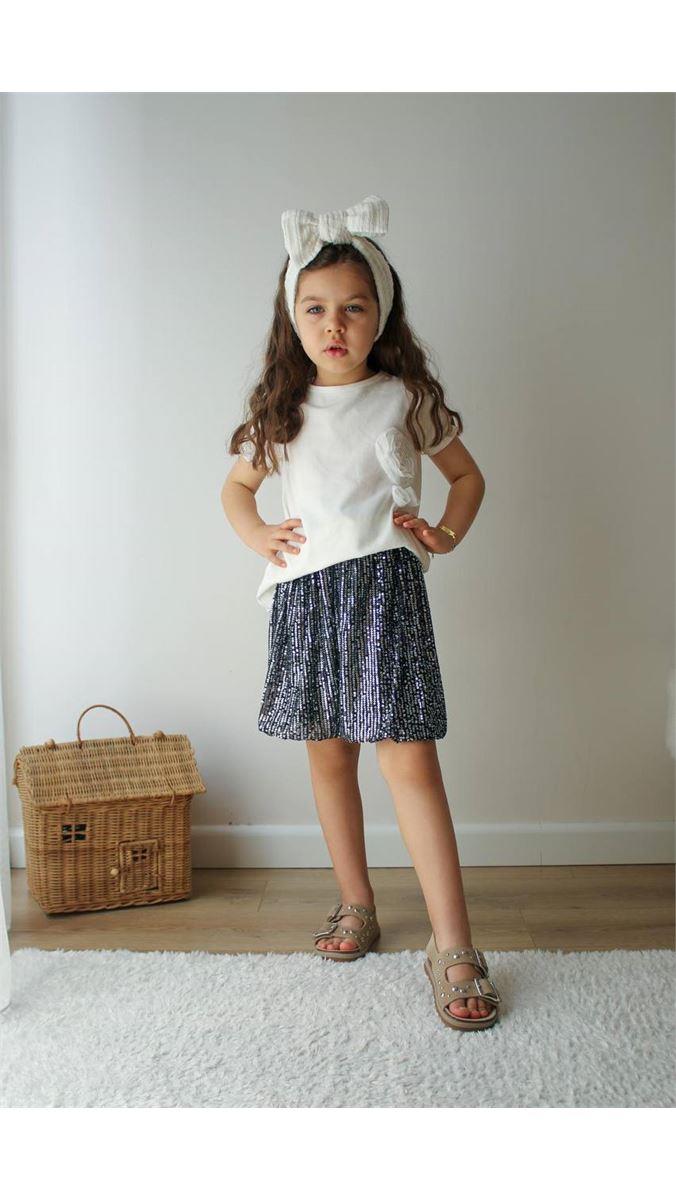 2406-67 Gül Kabartmalı Pul Eteklii Kız Çocuk Takım BEYAZ