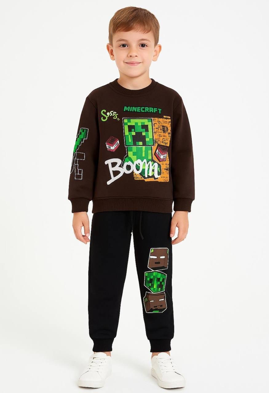2436 Minecraft Üç İplik Şardonlu Kız Çocuk Takım KAHVE
