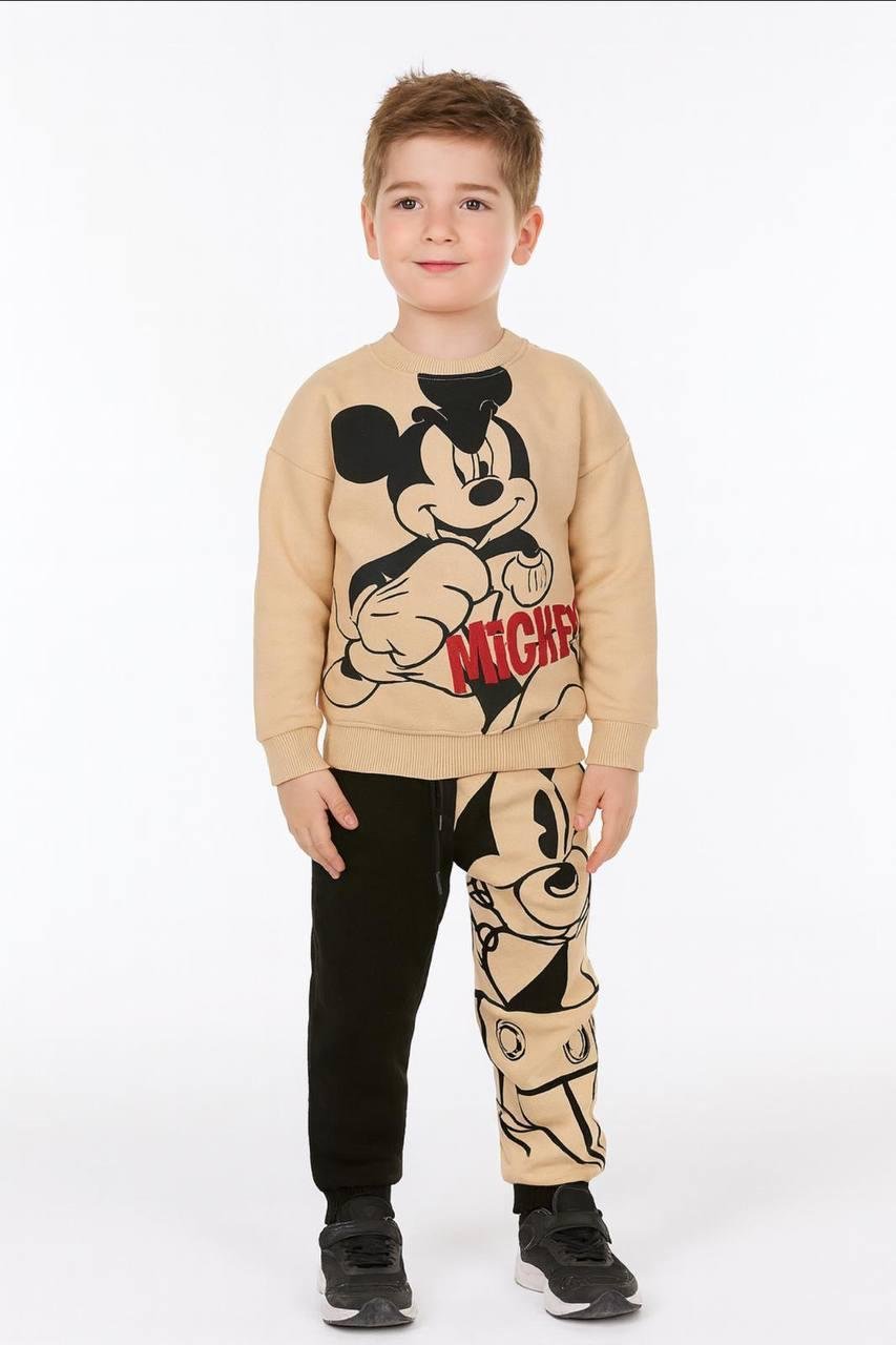 2438 Mickey Mousse Üç İplik Şardonlu Kız Çocuk Takım KREM