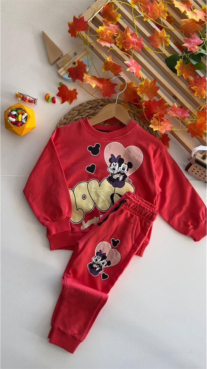 2440 Mickey Mouse Baskılı İkili Kız Takım NAR CICEGI