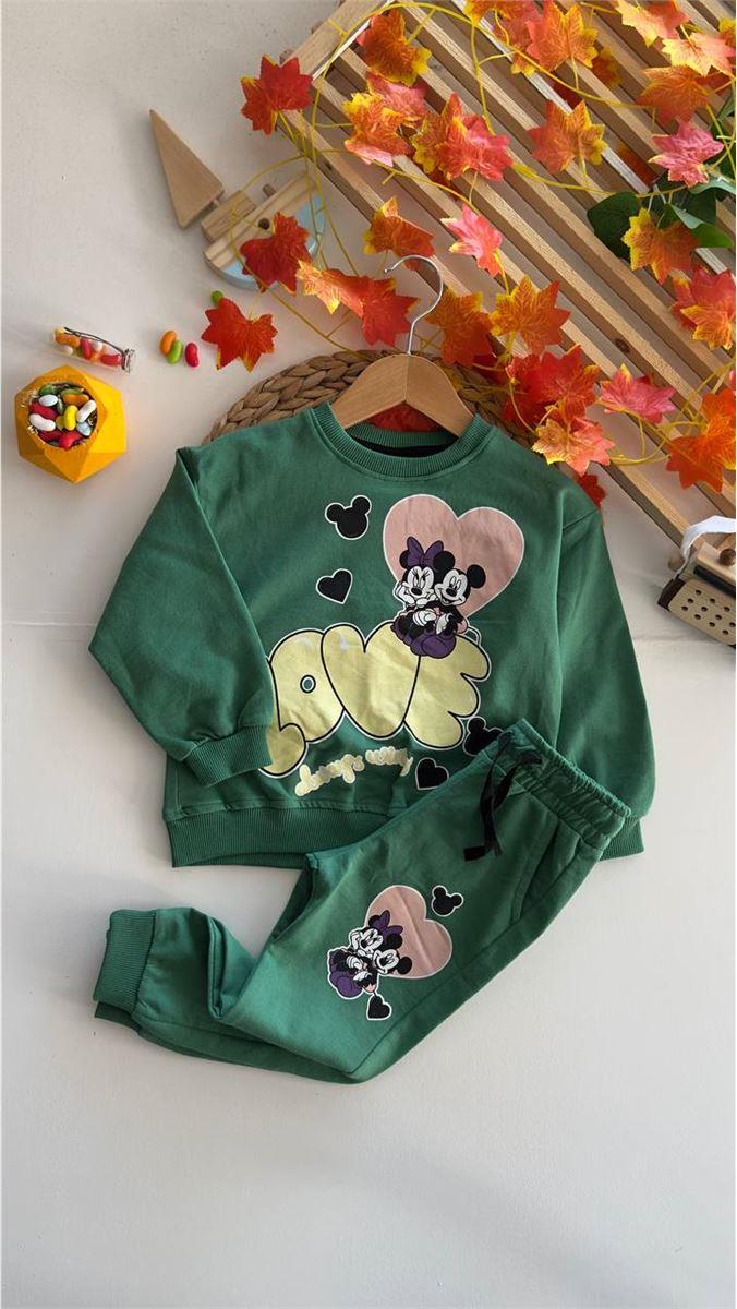 2440 Mickey Mouse Baskılı İkili Kız Takım YEŞİL