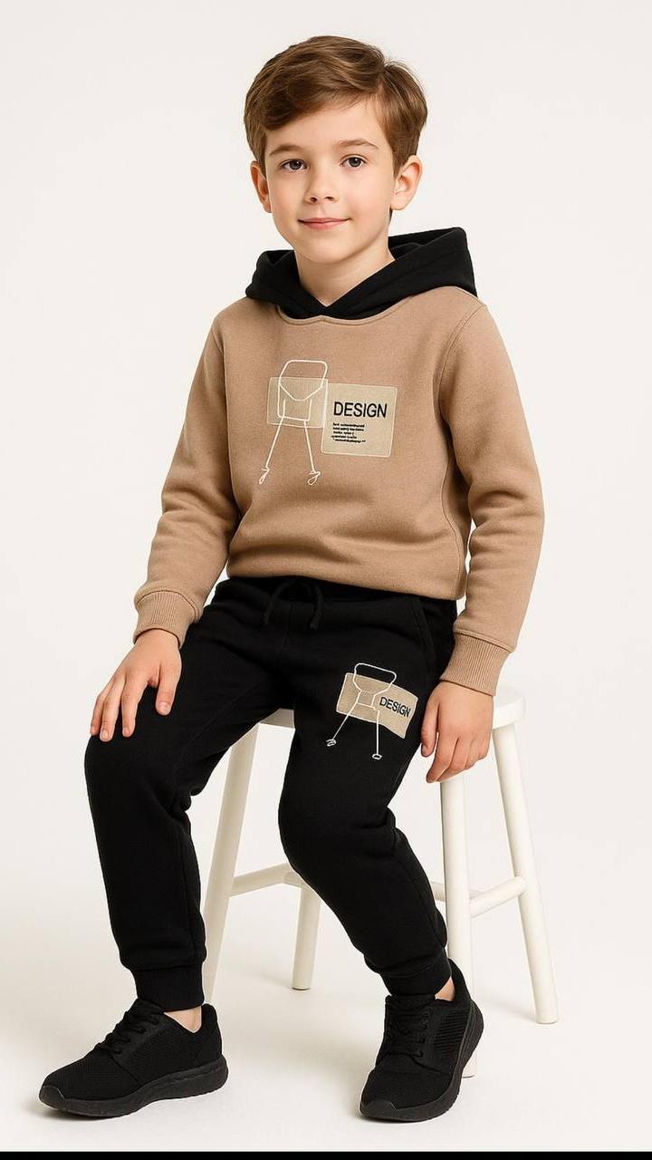 2526-1 Design Yazılı İp Baskılı Üç İplik Takım BEJ
