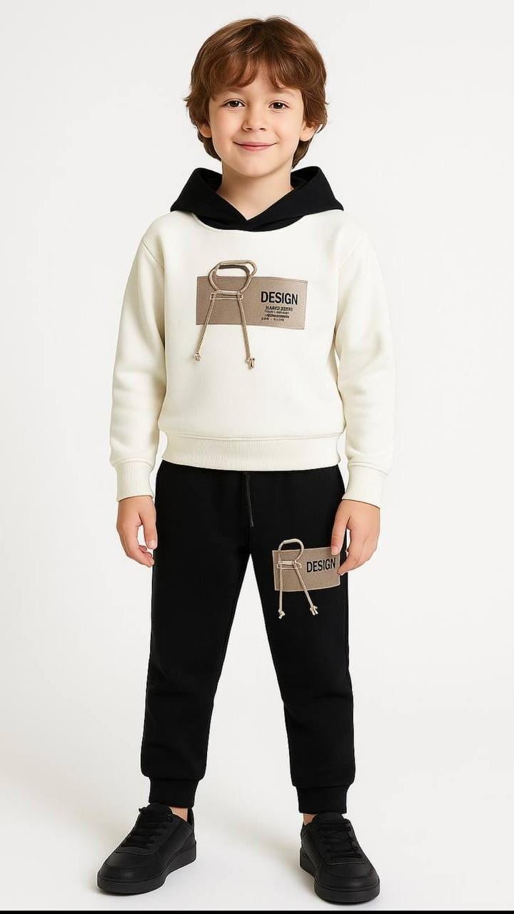 2526-1 Design Yazılı İp Baskılı Üç İplik Takım KREM