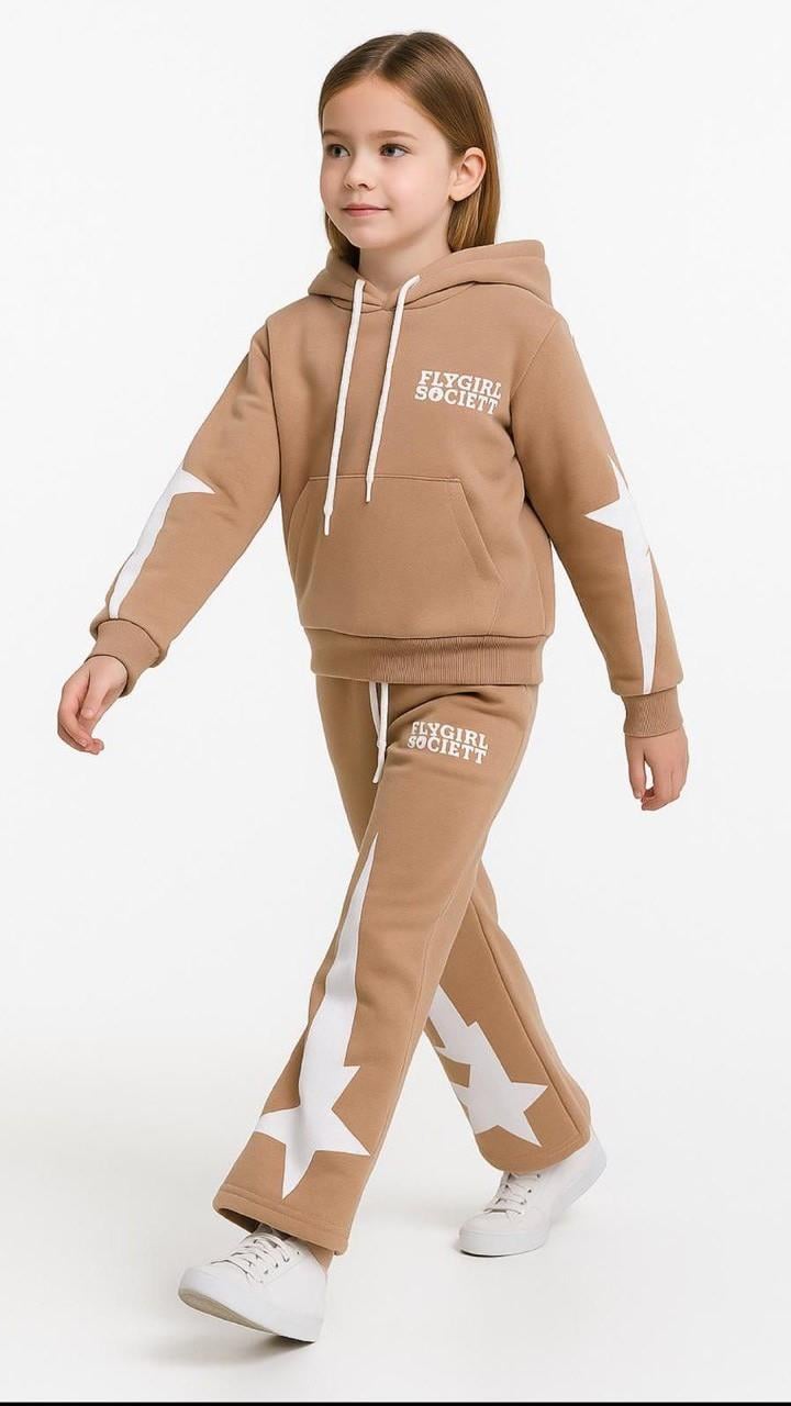 2526-2 Fly Girl Baskılı Üç İplik Takım BEJ