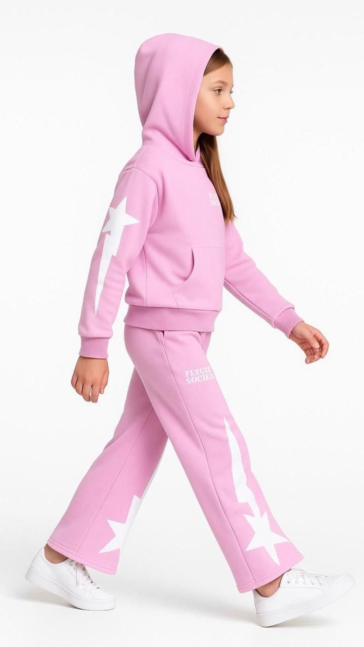 2526-2 Fly Girl Baskılı Üç İplik Takım PEMBE