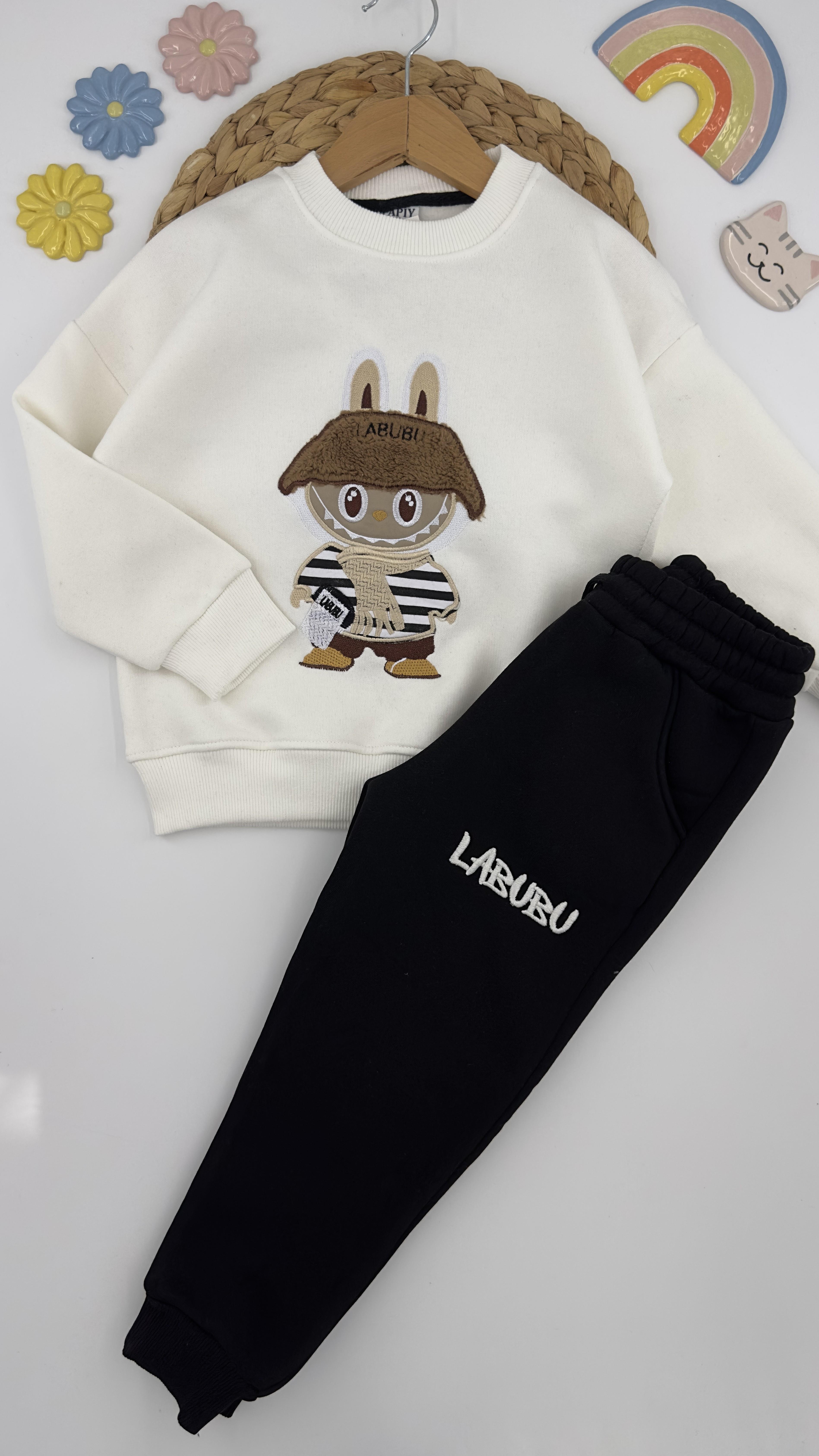 2526-3 Labubu Baskılı Üç İplik Takım KREM