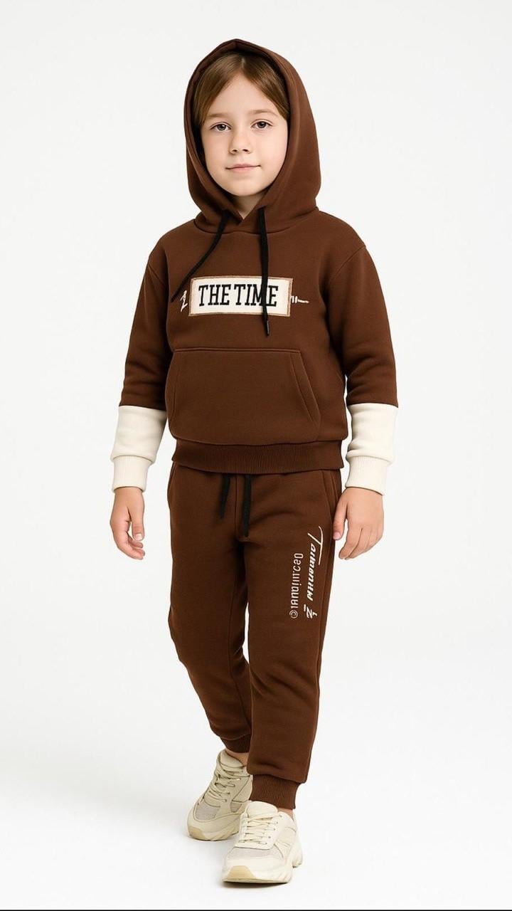 2526-4 The Time Baskılı Üç İplik Takım KAHVE