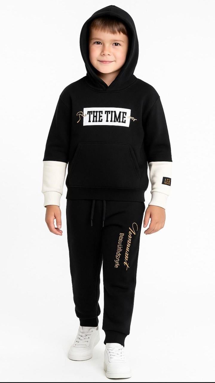 2526-4 The Time Baskılı Üç İplik Takım SİYAH