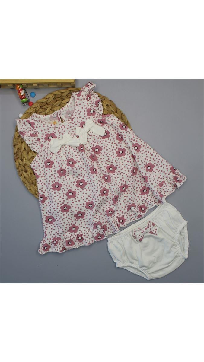 25285 Çiçek Desenli İkili Elbise GÜL KURUSU