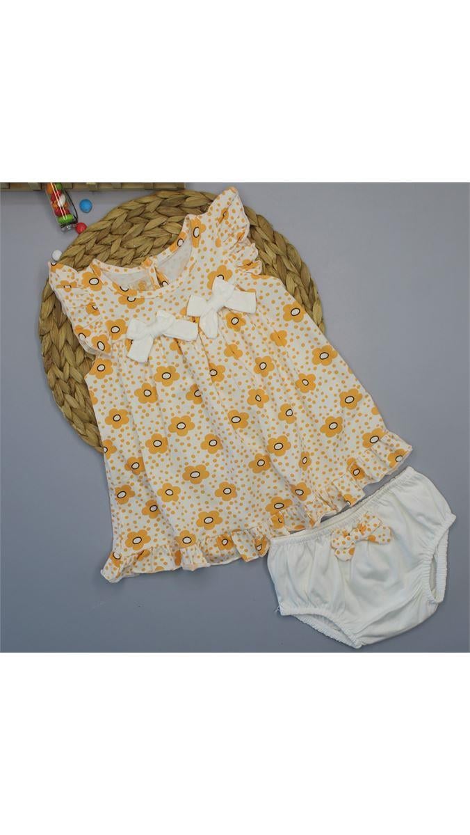 25285 Çiçek Desenli İkili Elbise TURUNCU