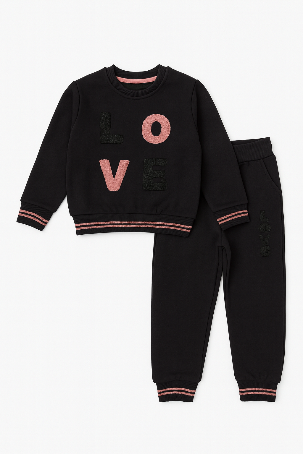 253025 Love Nakışlı Üç İplik Şardonlu Takım SİYAH