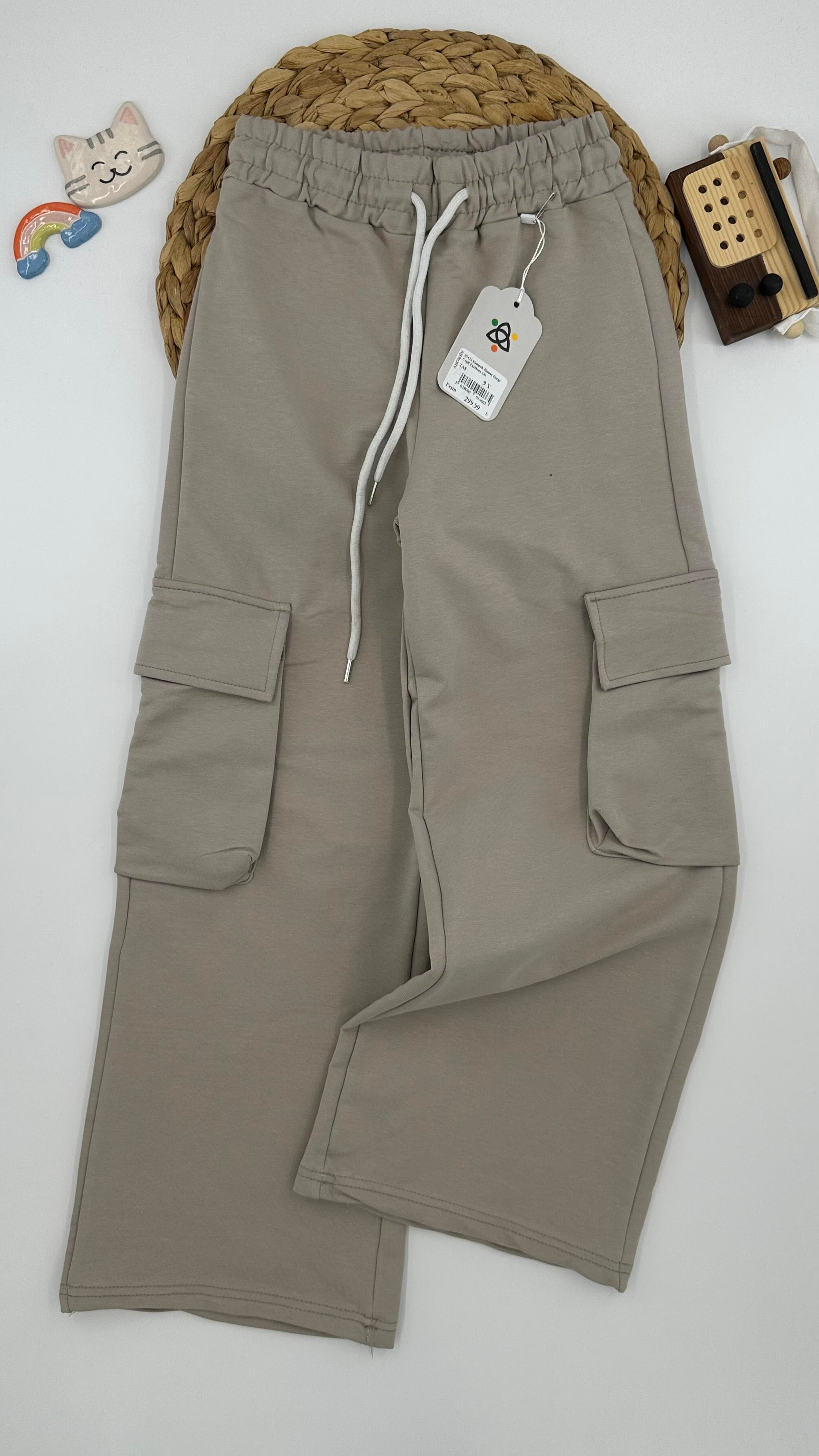 25432 Kompak Kumaş Kargo Cepli Eşofman Altı TAŞ