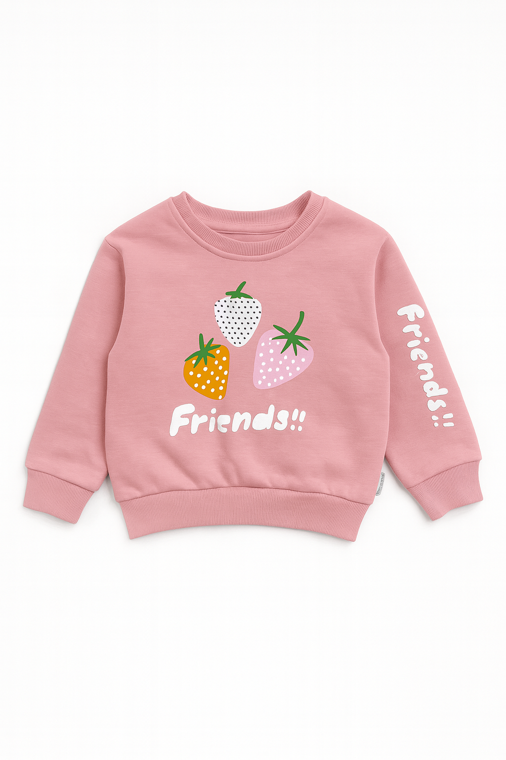 256031 Çilek Detaylı Üç İplik Sweat PEMBE