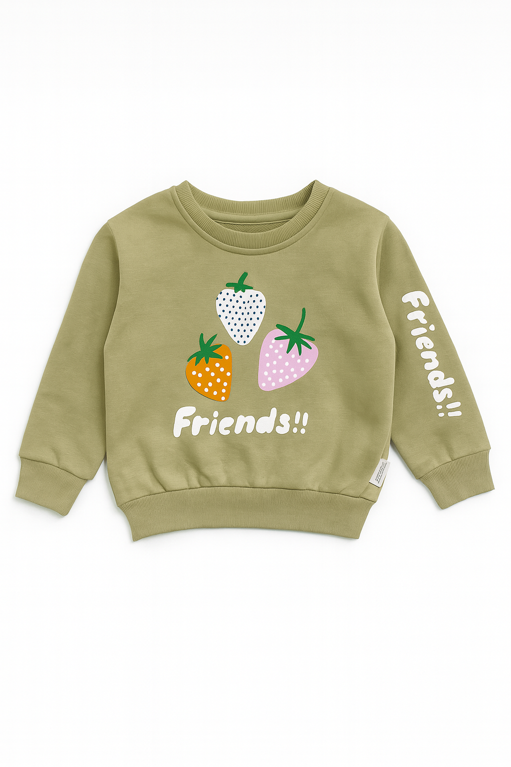 256031 Çilek Detaylı Üç İplik Sweat YEŞİL
