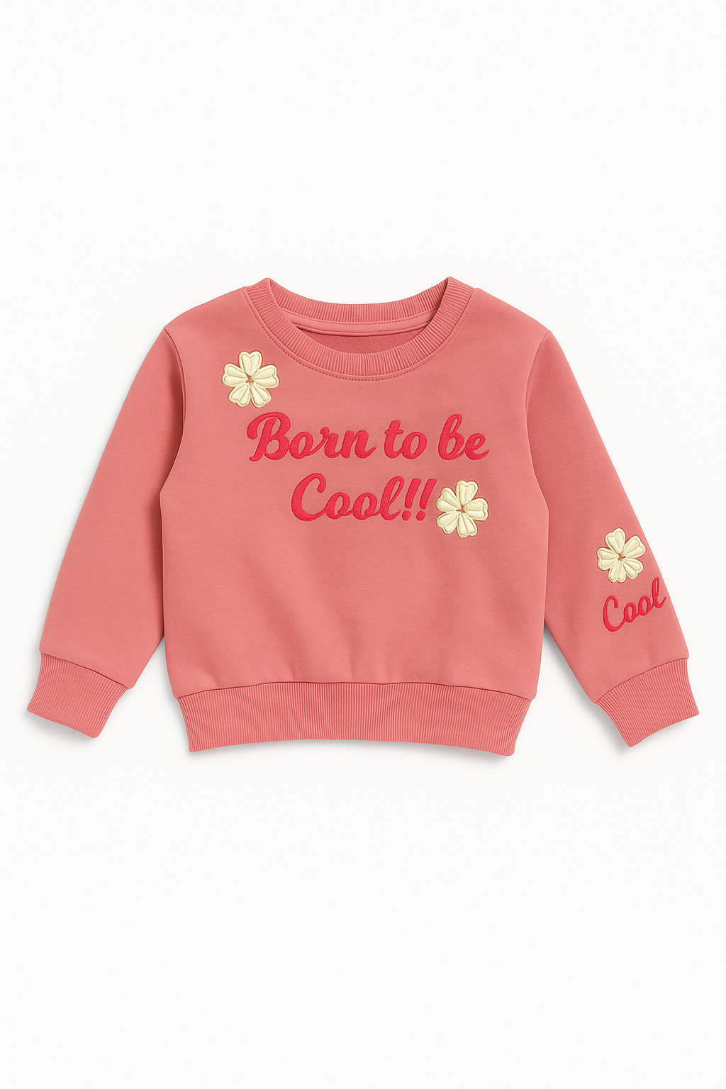 256037 Born To Be Cool Nakışlı Üç İplik Sweat PUDRA