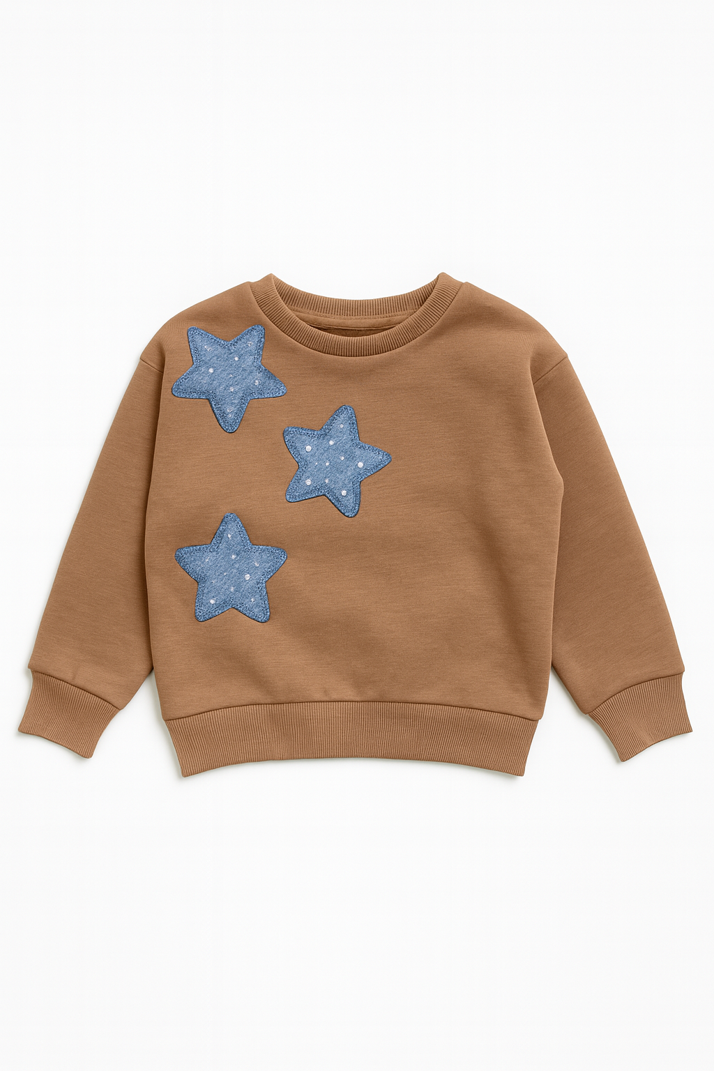 256041 Yıldız Detaylı Üç İplik Sweat KAHVE