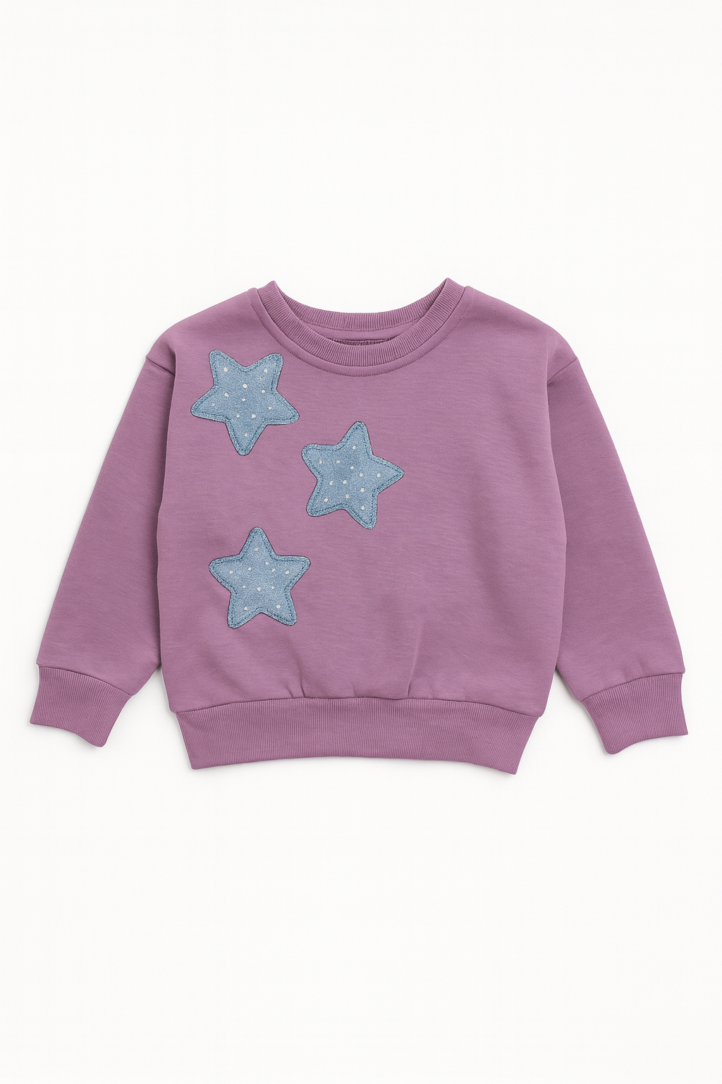 256041 Yıldız Detaylı Üç İplik Sweat LİLA