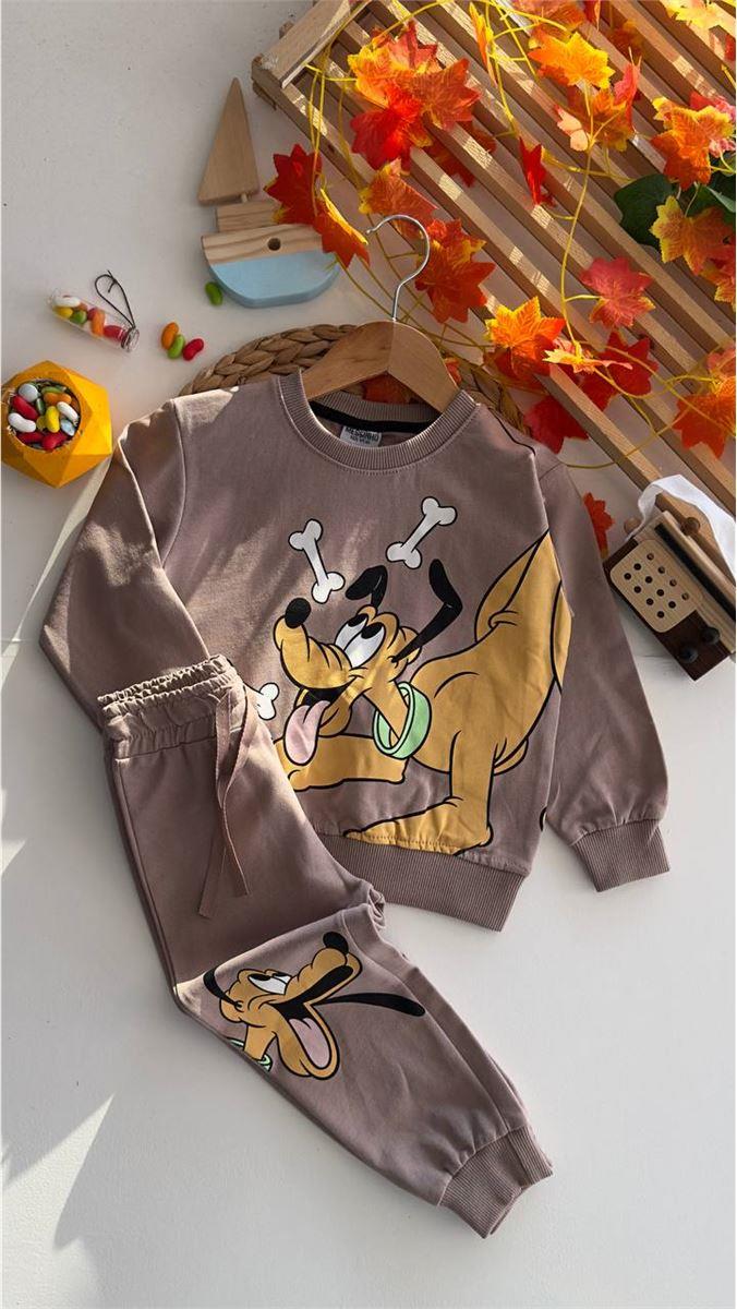 25755 Köpekcik Baskılı İkili Takım KAHVERENGİ