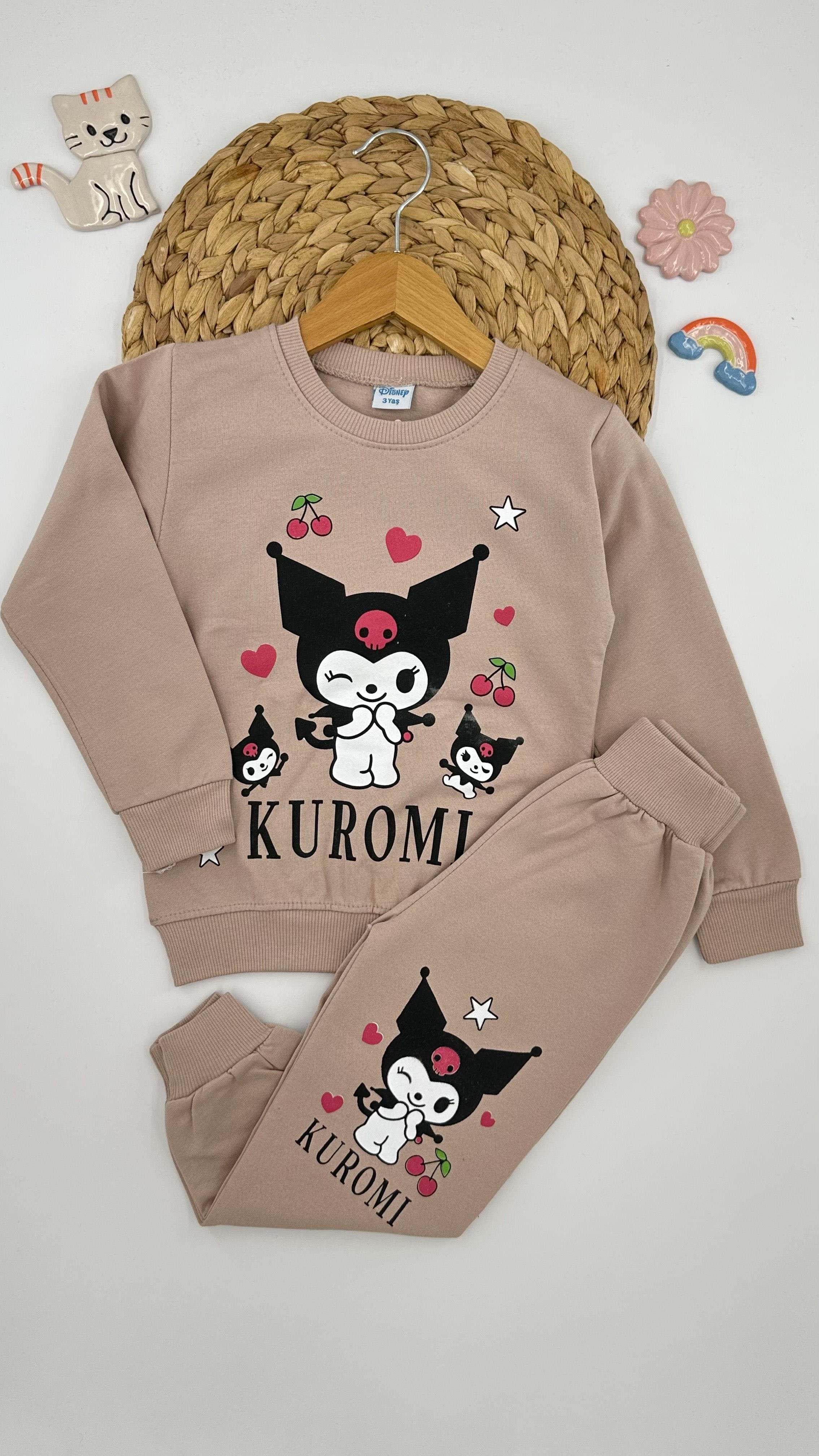 2608-1 Kuromi Desenli İki İplik Şardonlu Kız Çocuk Takım KAHVE