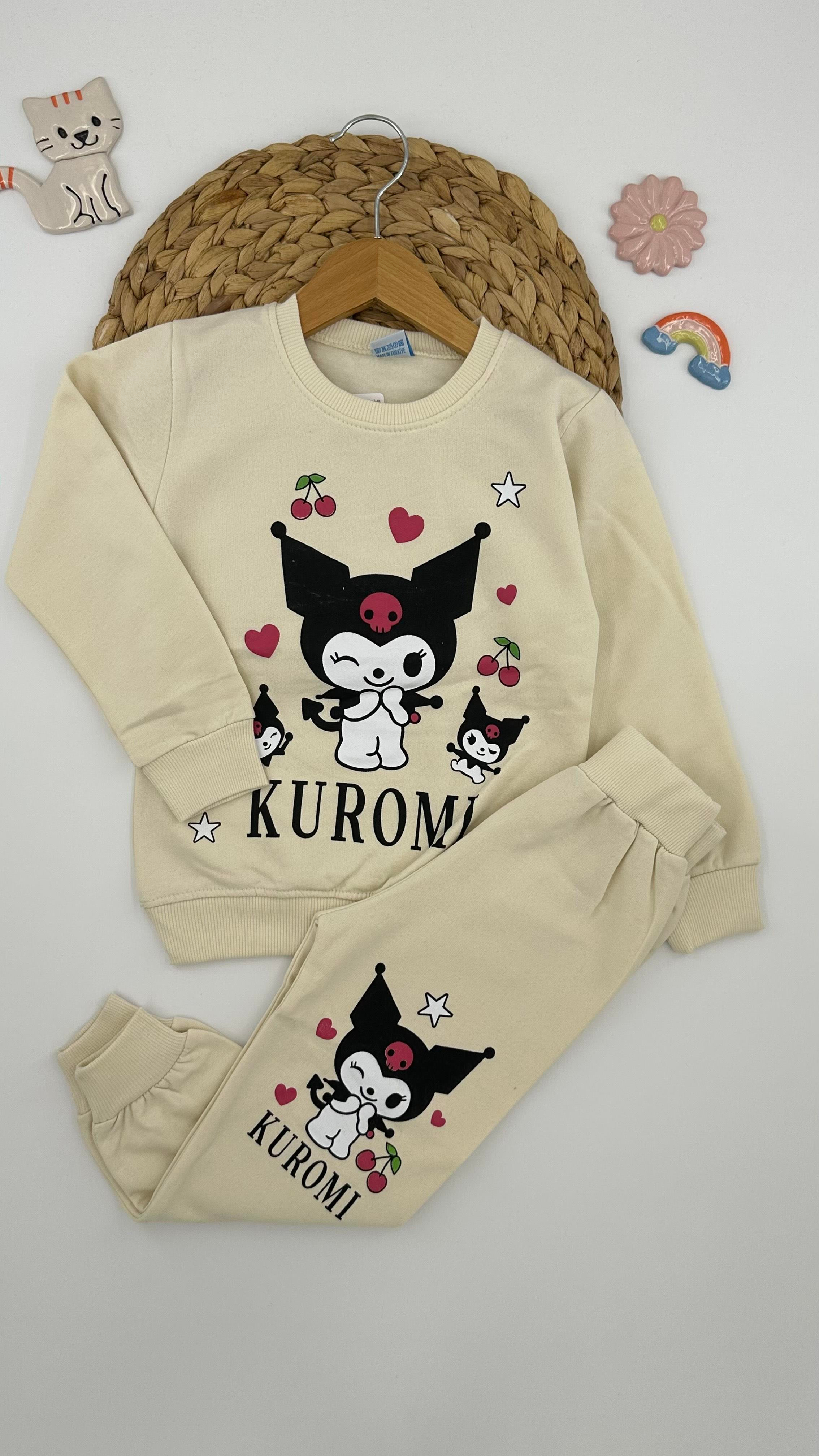 2608-1 Kuromi Desenli İki İplik Şardonlu Kız Çocuk Takım KREM