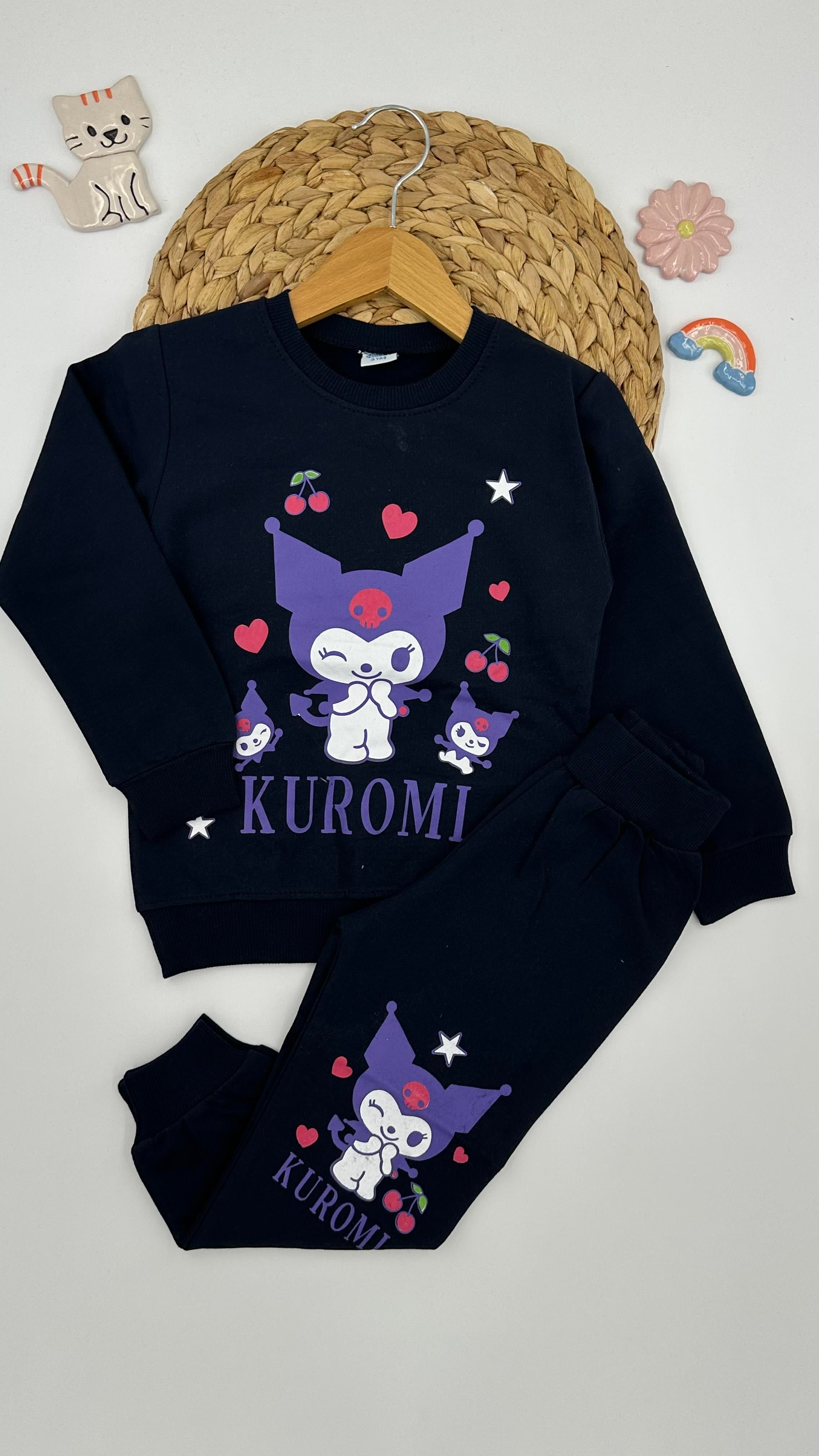2608-1 Kuromi Desenli İki İplik Şardonlu Kız Çocuk Takım SİYAH