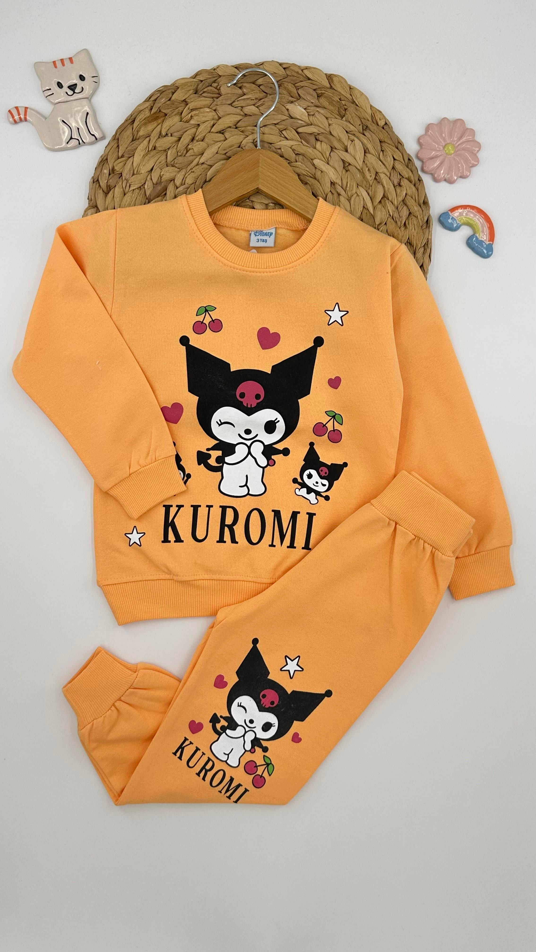2608-1 Kuromi Desenli İki İplik Şardonlu Kız Çocuk Takım TURUNCU
