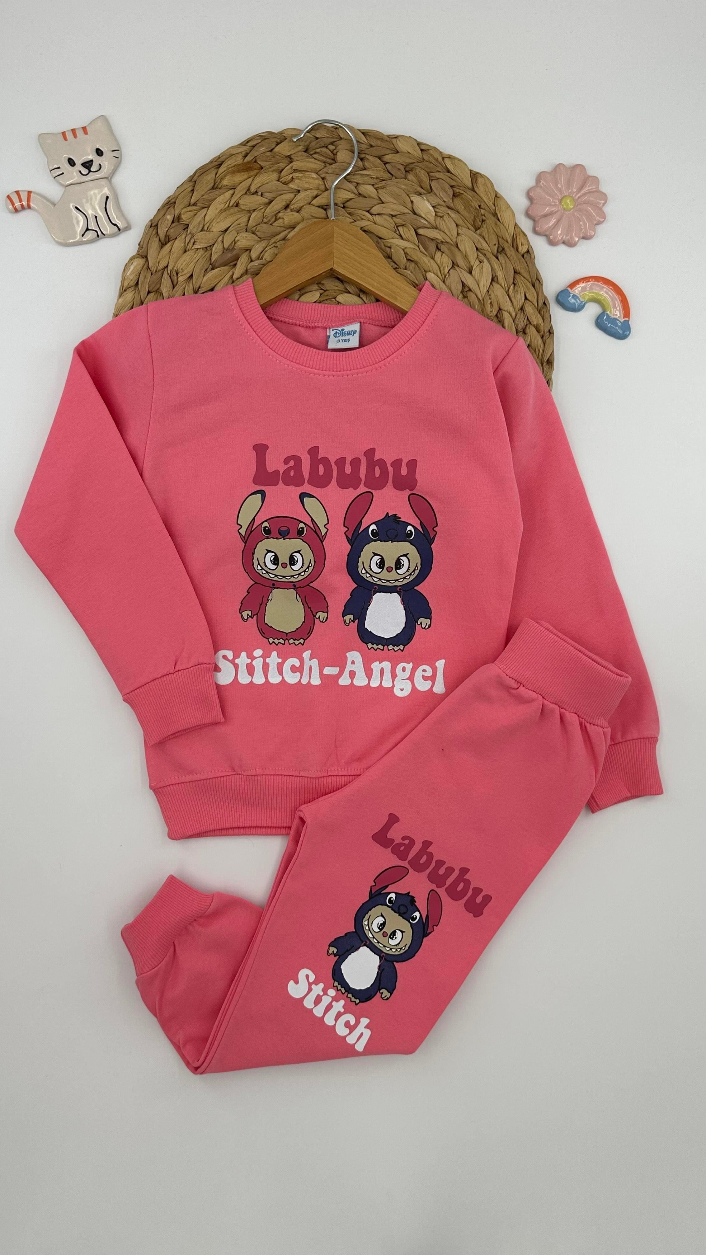2608-2 Labubu Desenli İki İplik Şardonlu Kız Çocuk Takım FUŞYA