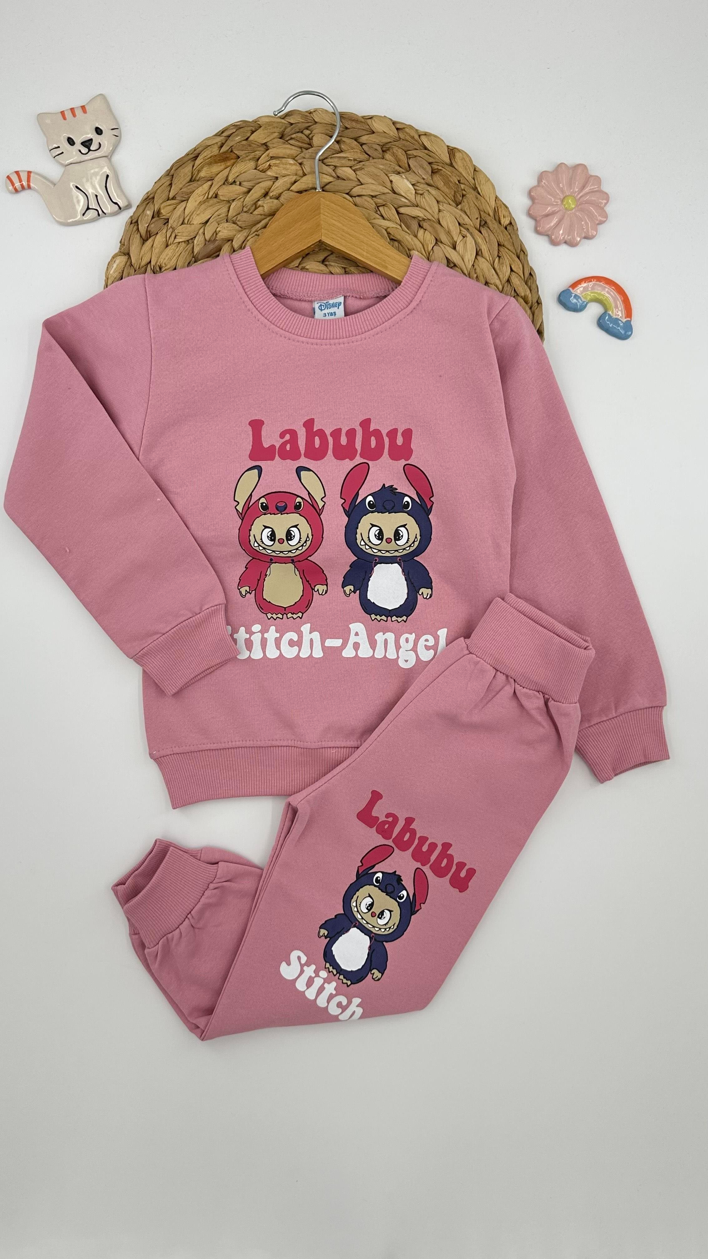 2608-2 Labubu Desenli İki İplik Şardonlu Kız Çocuk Takım GÜLK