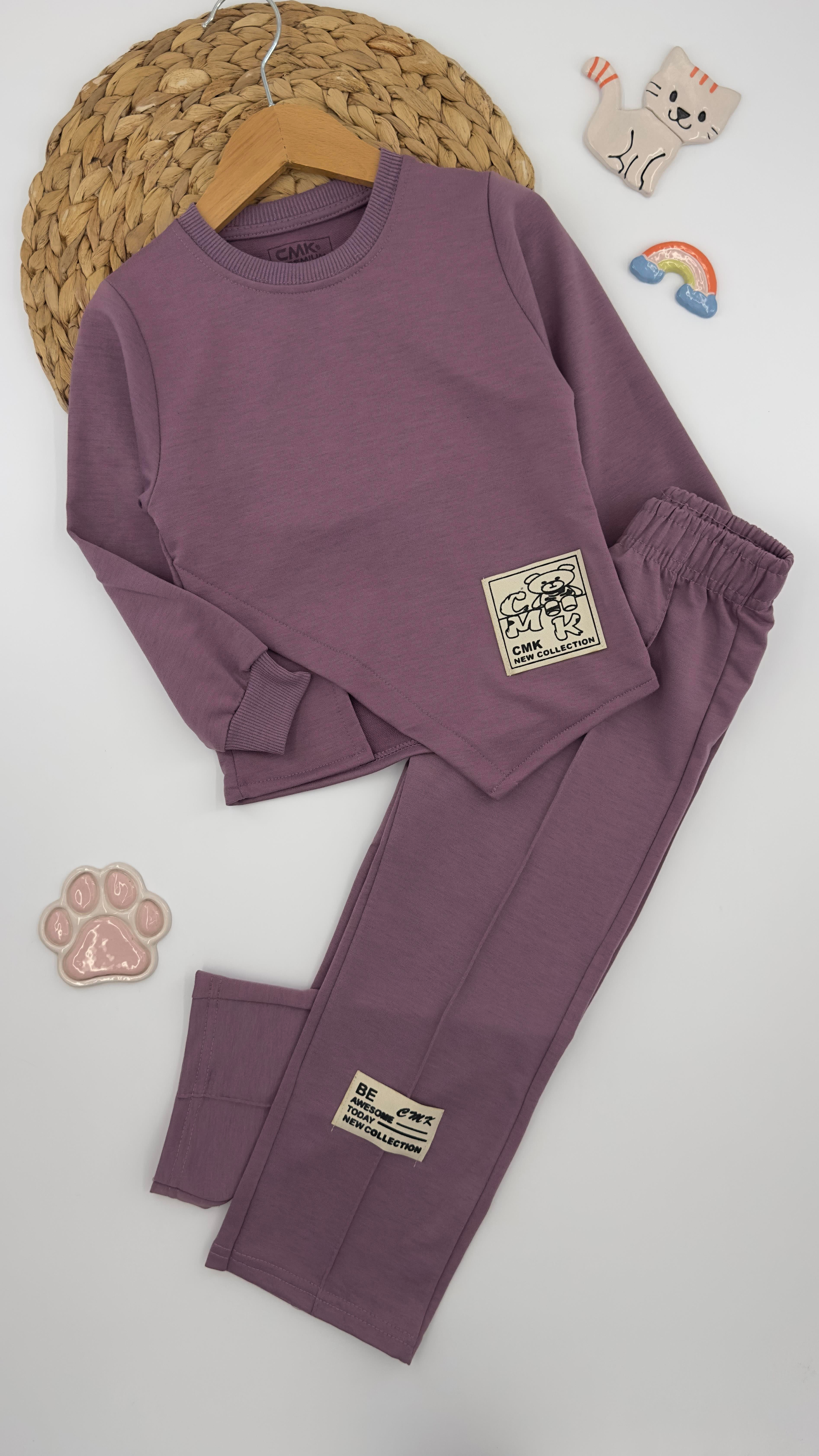 27090 Asimetrik Kesim Ayıcık Armalı Kız Takım MURDUM