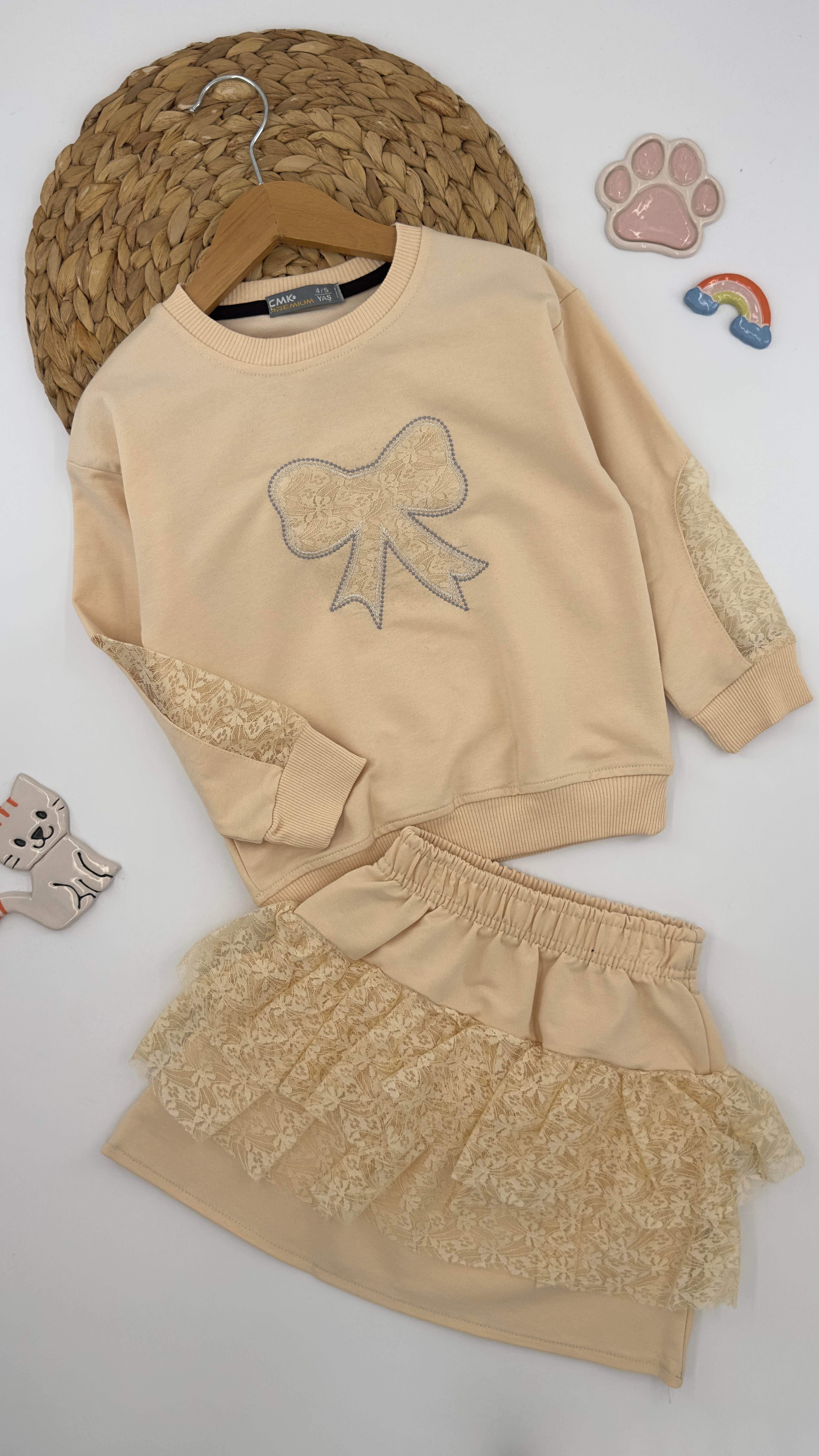 27090 Fiyonk Detaylı Dantel Etekli Takım KREM