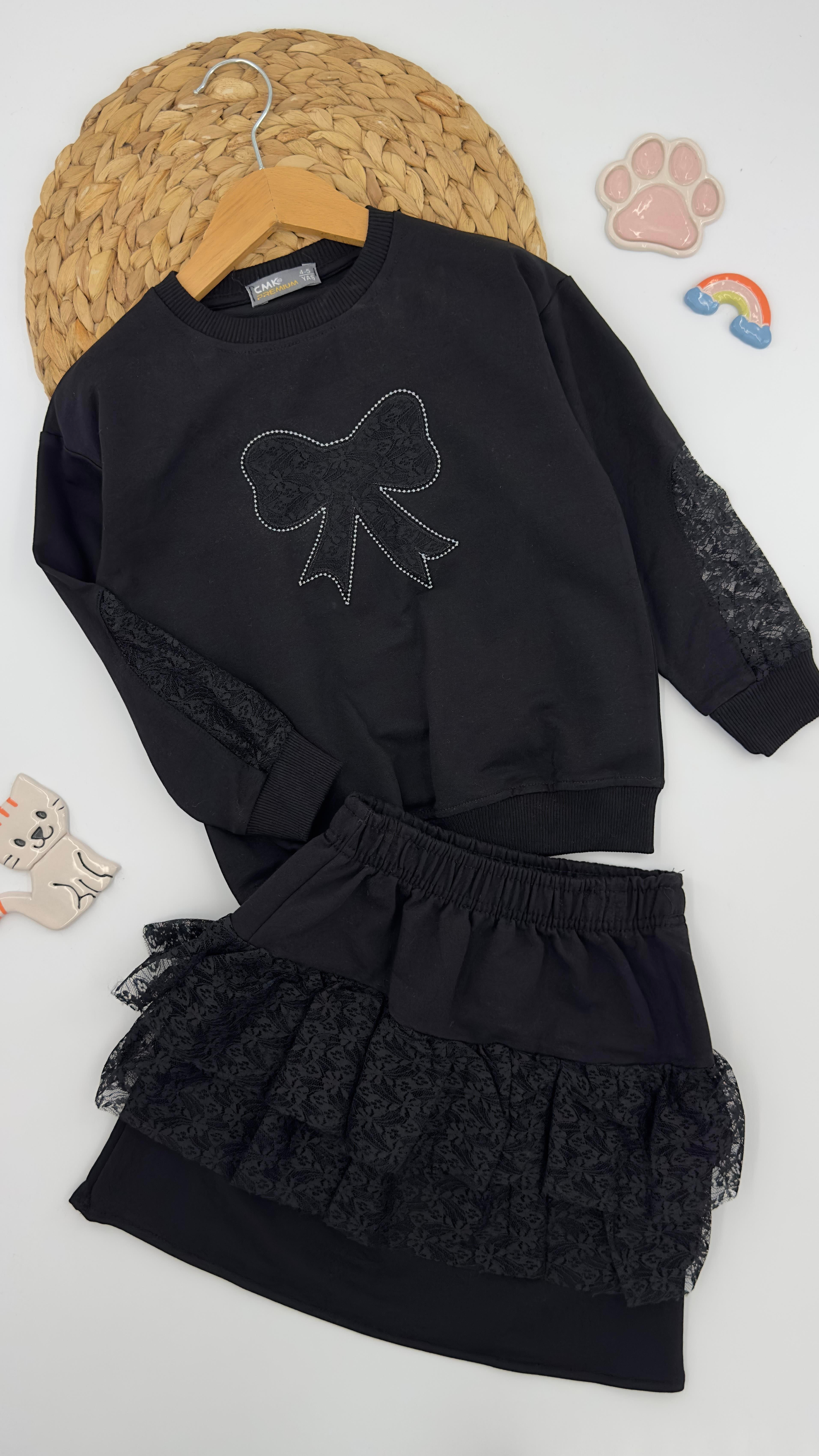 27090 Fiyonk Detaylı Dantel Etekli Takım SİYAH