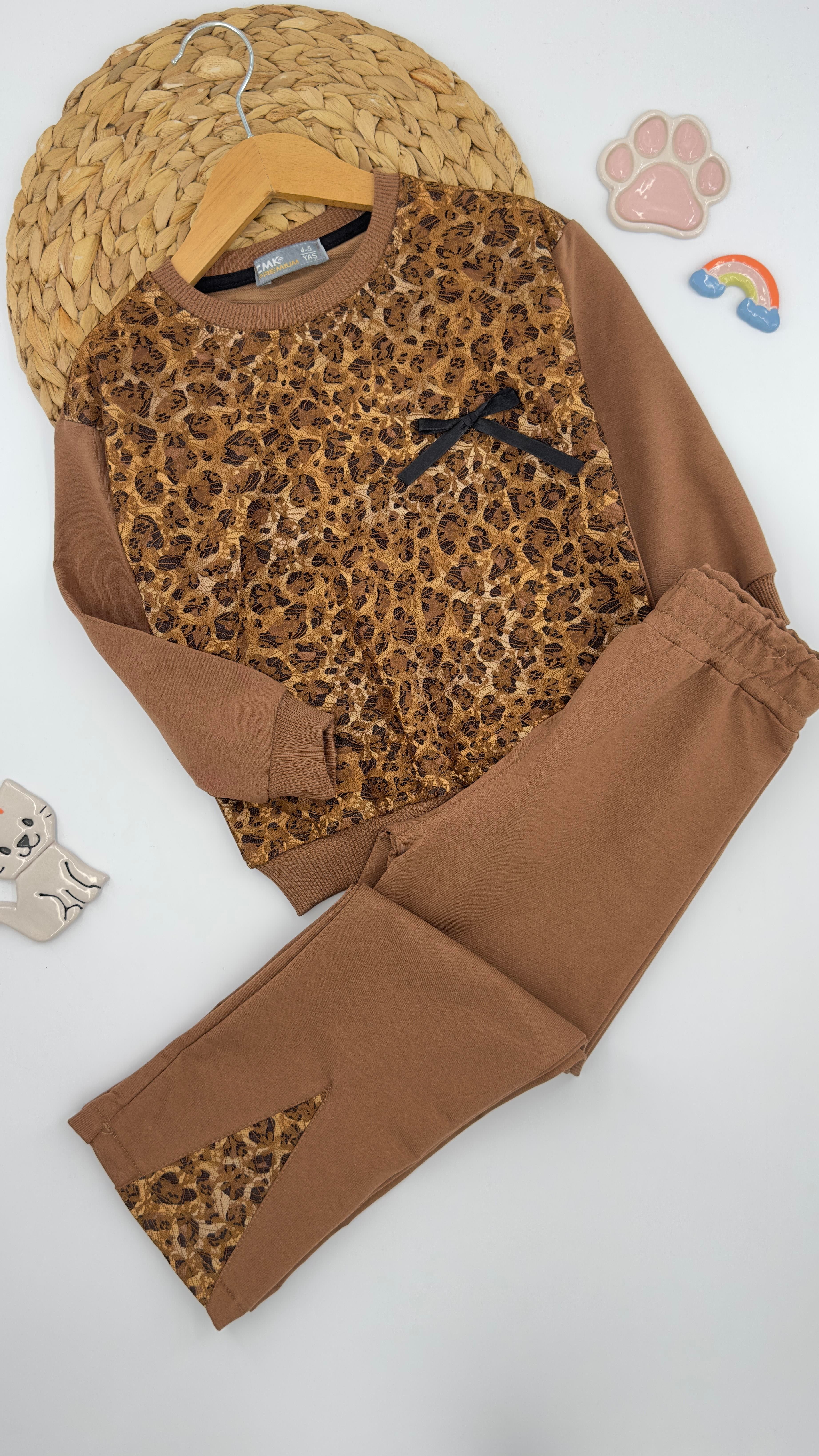 27090 Fiyonklu Danten Detaylı Pantolon Kız Takım KAHVE