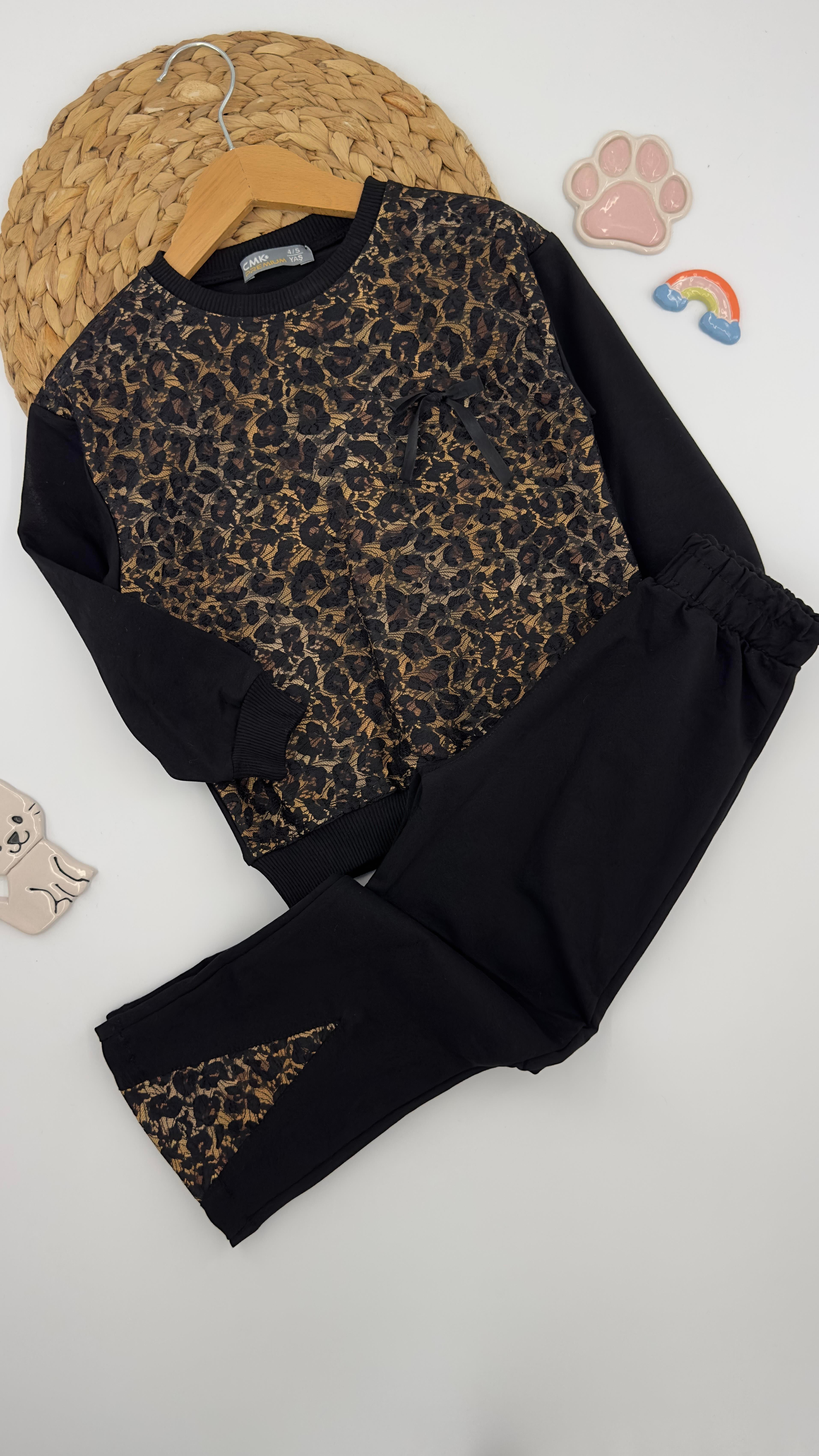 27090 Fiyonklu Danten Detaylı Pantolon Kız Takım SİYAH