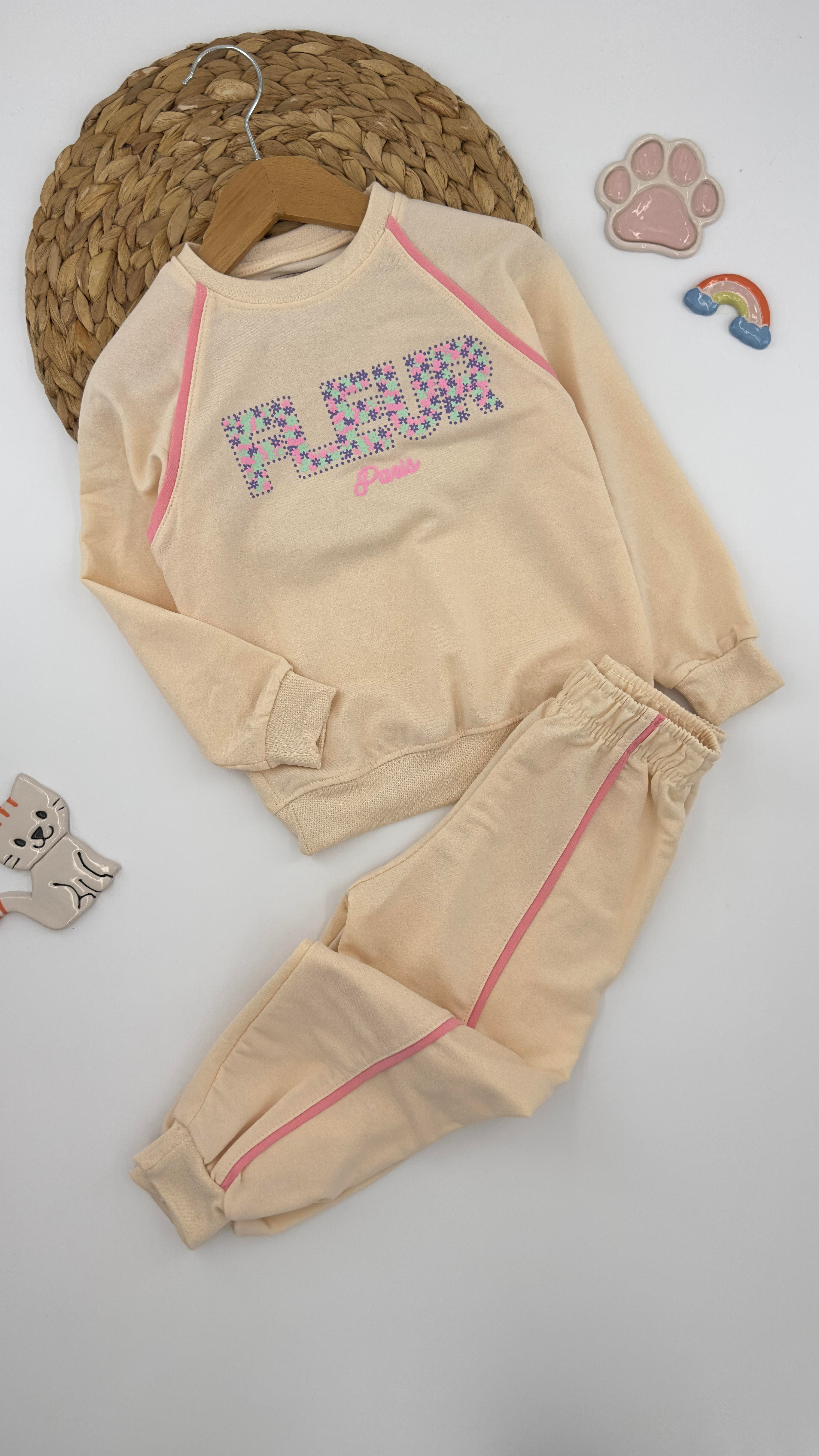 27090 Fleur Çiçek Baskılı Kız Çocuk Takım KREM