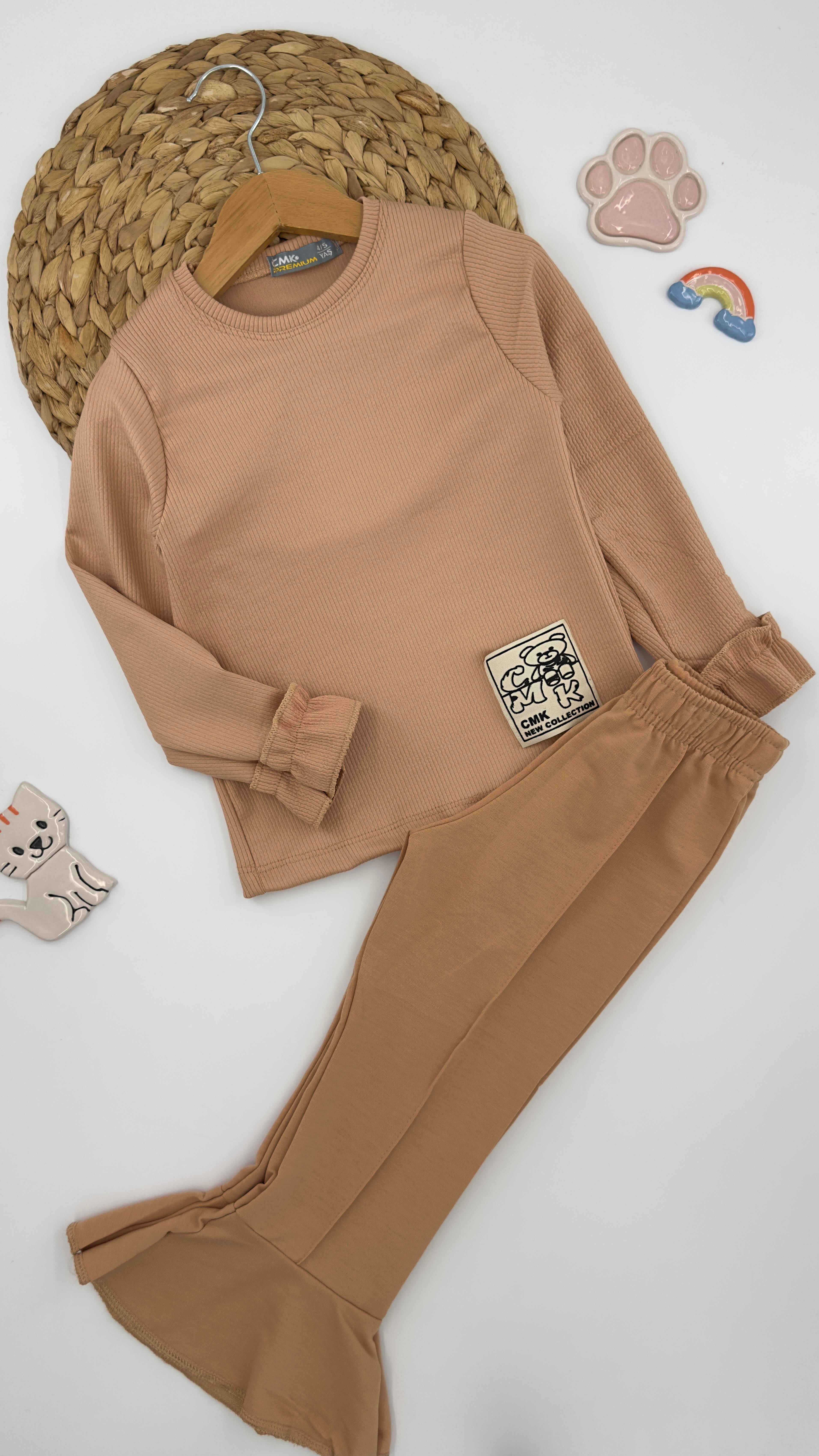 27090 İspanyol Paça Ayıcık Armalı Kolu Fırfırlı Kız Takım KRMT
