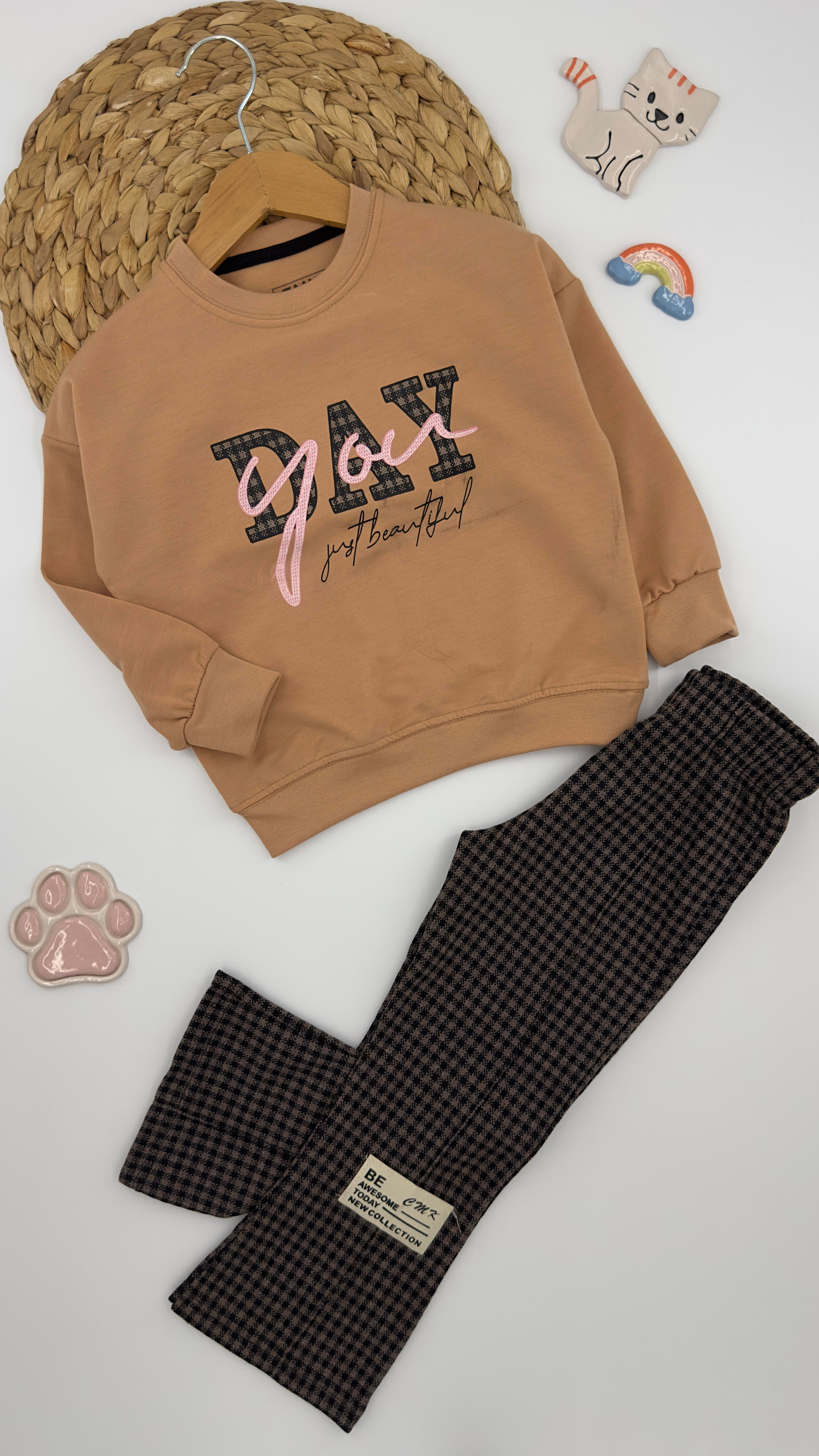 27090 İspanyol Paça Day Baskılı Kare Pantolonlu Takım KRMT