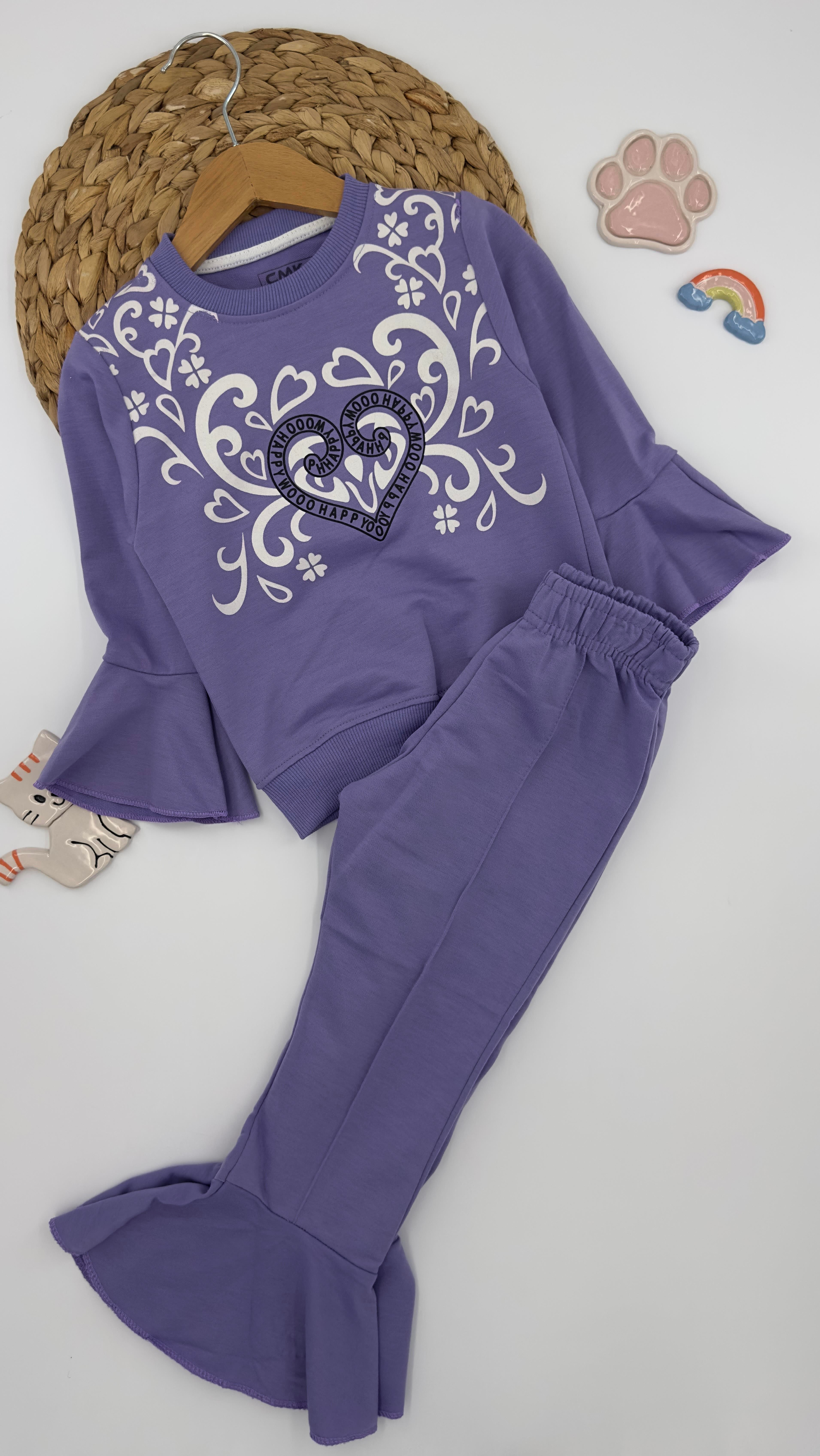 27090 Kalp Desenli İspanyol Paça Fırfırlı Kız Takım MOR